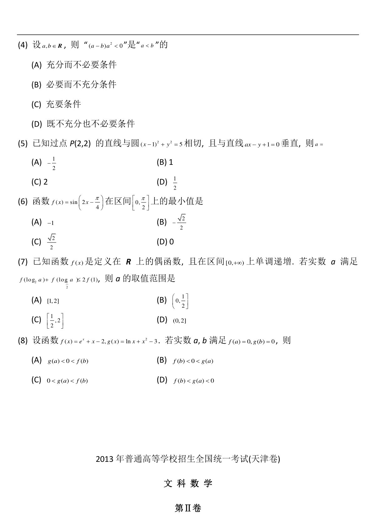 下载2013年天津高考文科数学试题及答案(Word版)PDF格式或doc