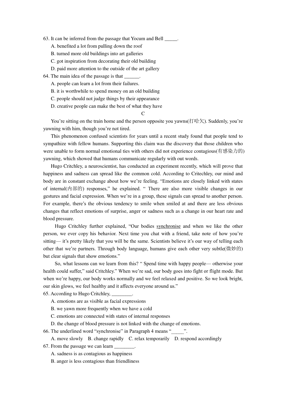 下载2008年高考英语湖南卷答案及试题word版PDF格式或doc