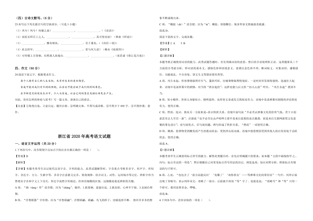 下载2020年浙江省高考语文(含解析版)PDF格式或doc