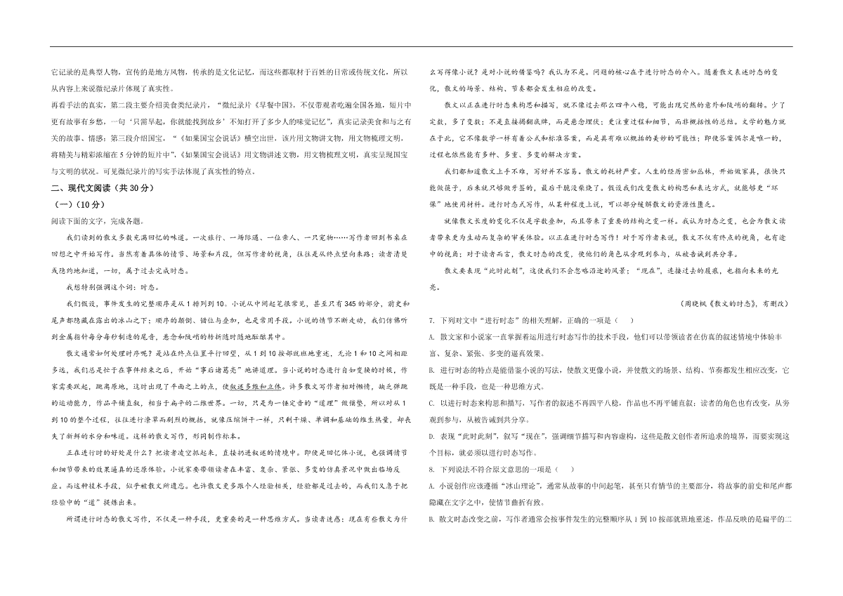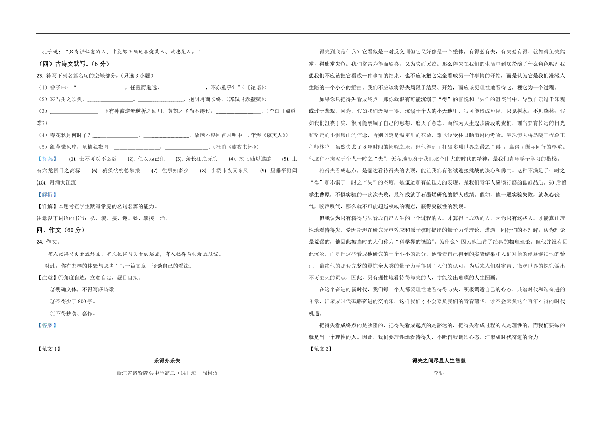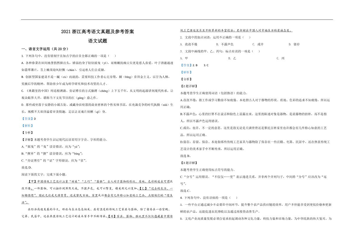 下载2021年浙江省高考语文(含解析版)PDF格式或doc