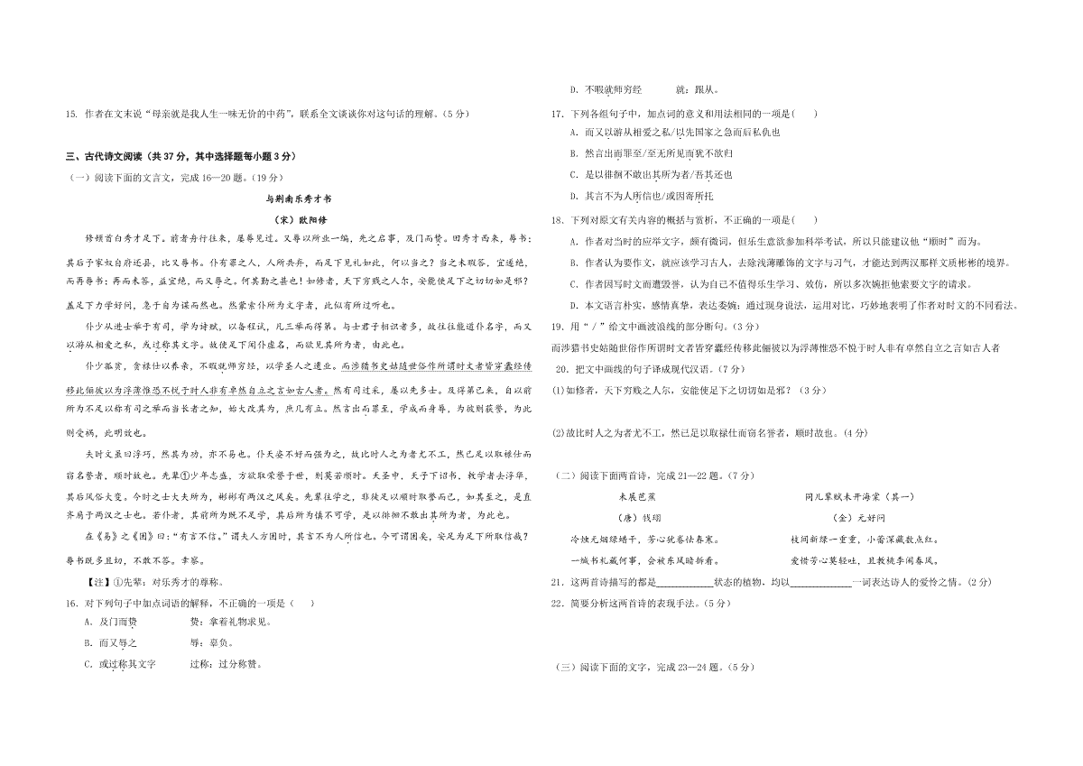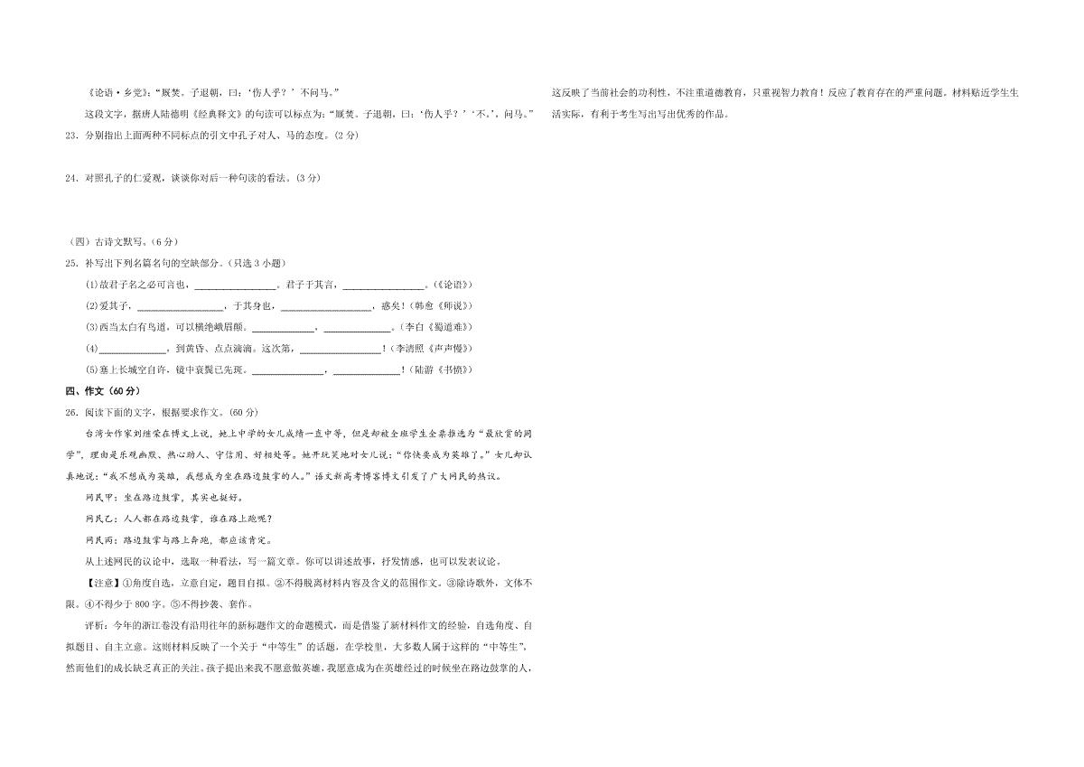 2012年浙江省高考语文(原卷版)