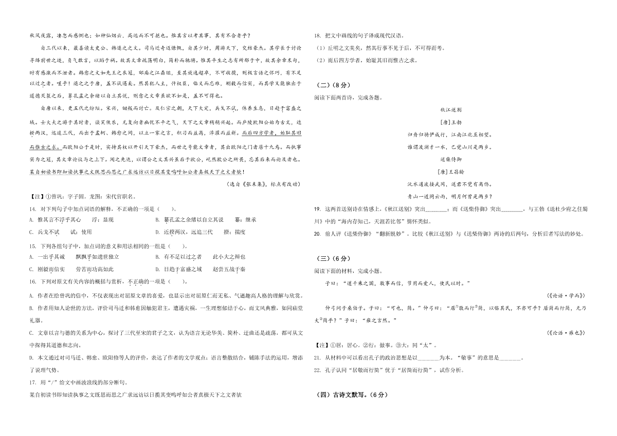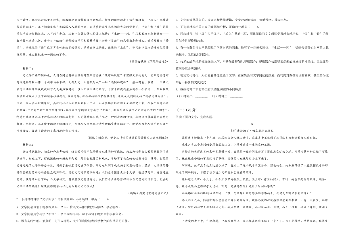 下载2020年浙江省高考语文(原卷版)PDF格式或doc