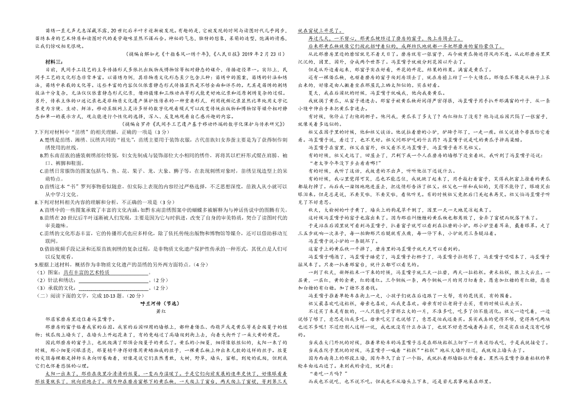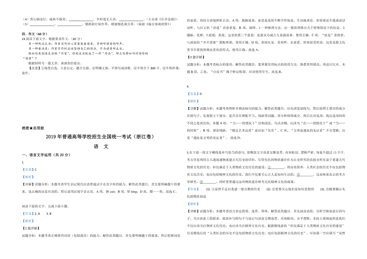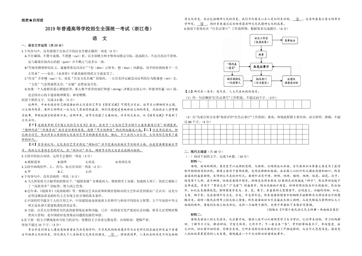 下载2019年浙江省高考语文(含解析版)PDF格式或doc