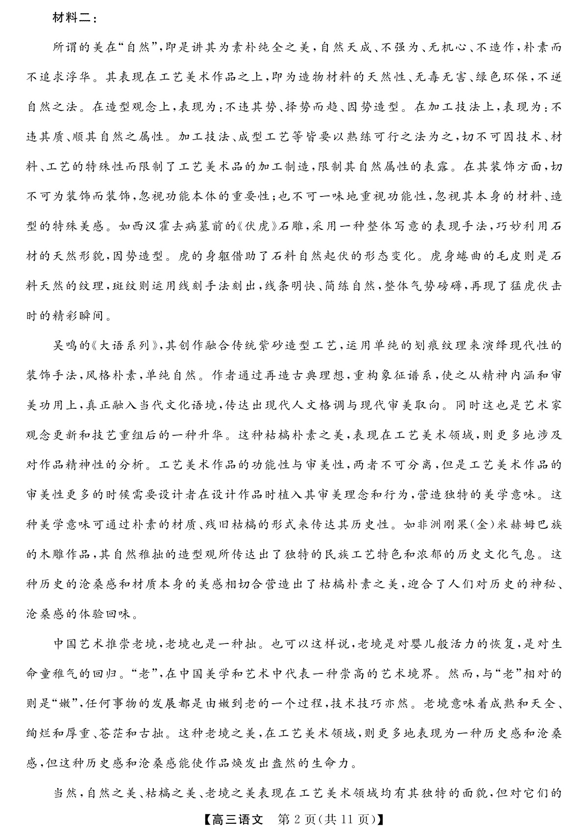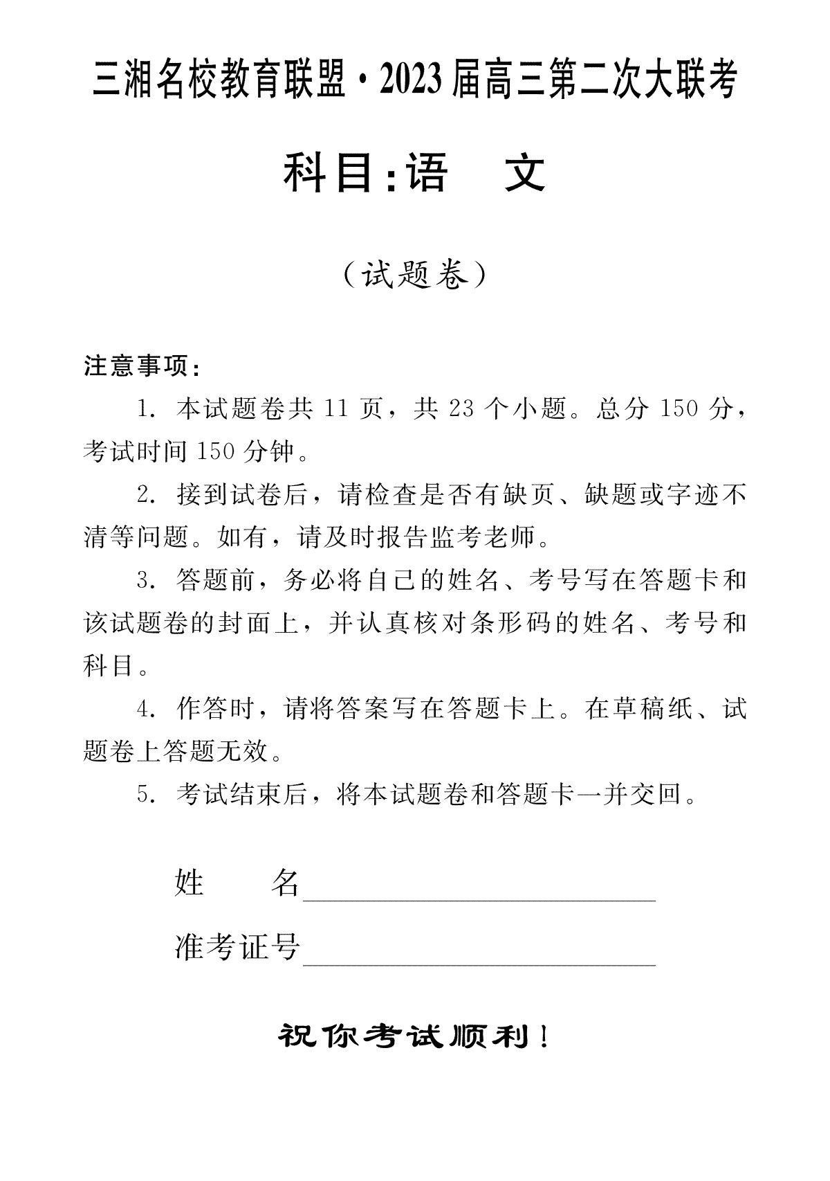 一、2023届三湘名校高三第二次大联考高三语文试卷