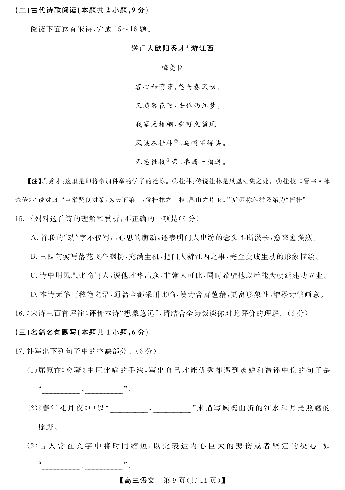 2023届三湘名校高三第二次大联考高三语文试卷于近期开考,本次考试对考生对知识的掌握参考价值大,为了方便大家复习掌握错题!小编在下文为大家准备了2023届三湘名校高三第二次大联考高三语文试卷试卷及答案解析详情,仅供考生参考。