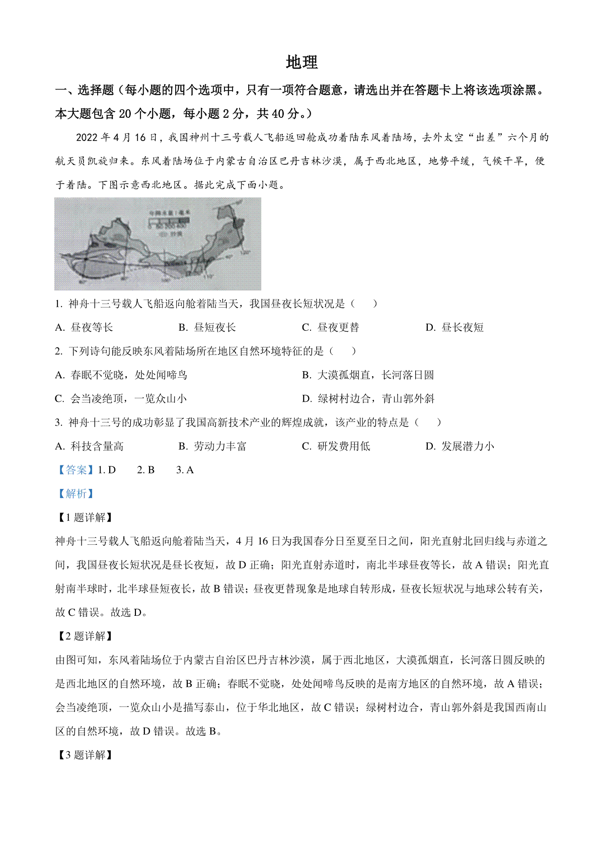 一、精品解析:2022年山西省晋中市中考地理真题(解析版)