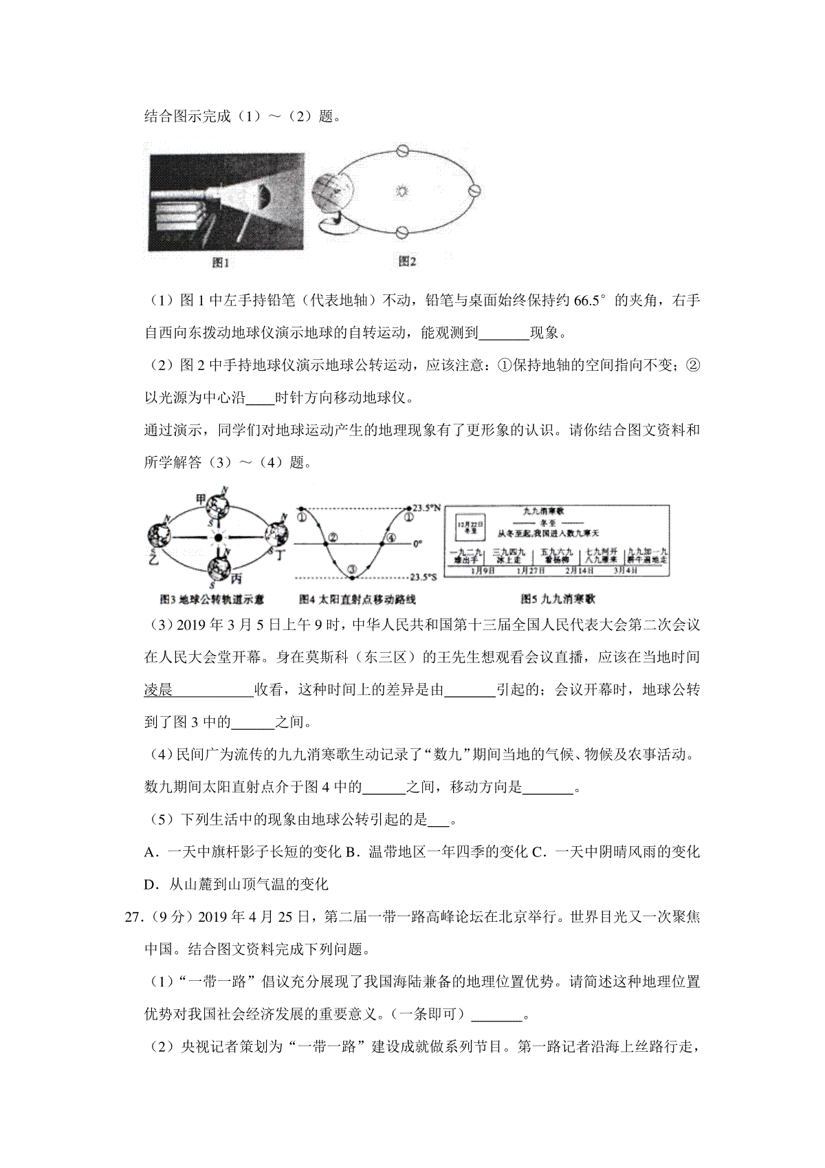 下载2019年地理试题PDF格式或doc