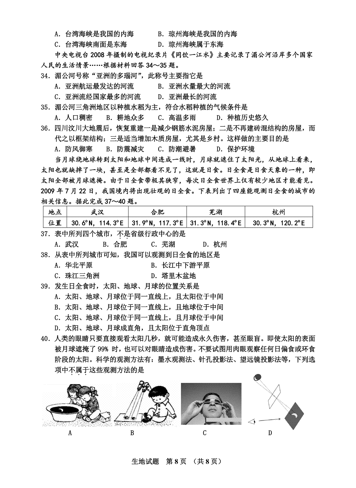 如果你想下载2009年广东省地理中考试题及答案DOC或PDF版,请点击本文末链接!
