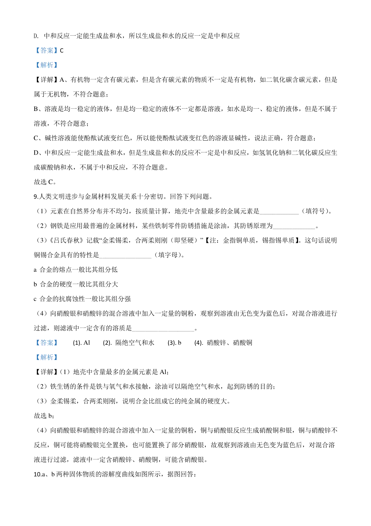 精品解析:山东省枣庄市2020年中考化学试题(解析版)