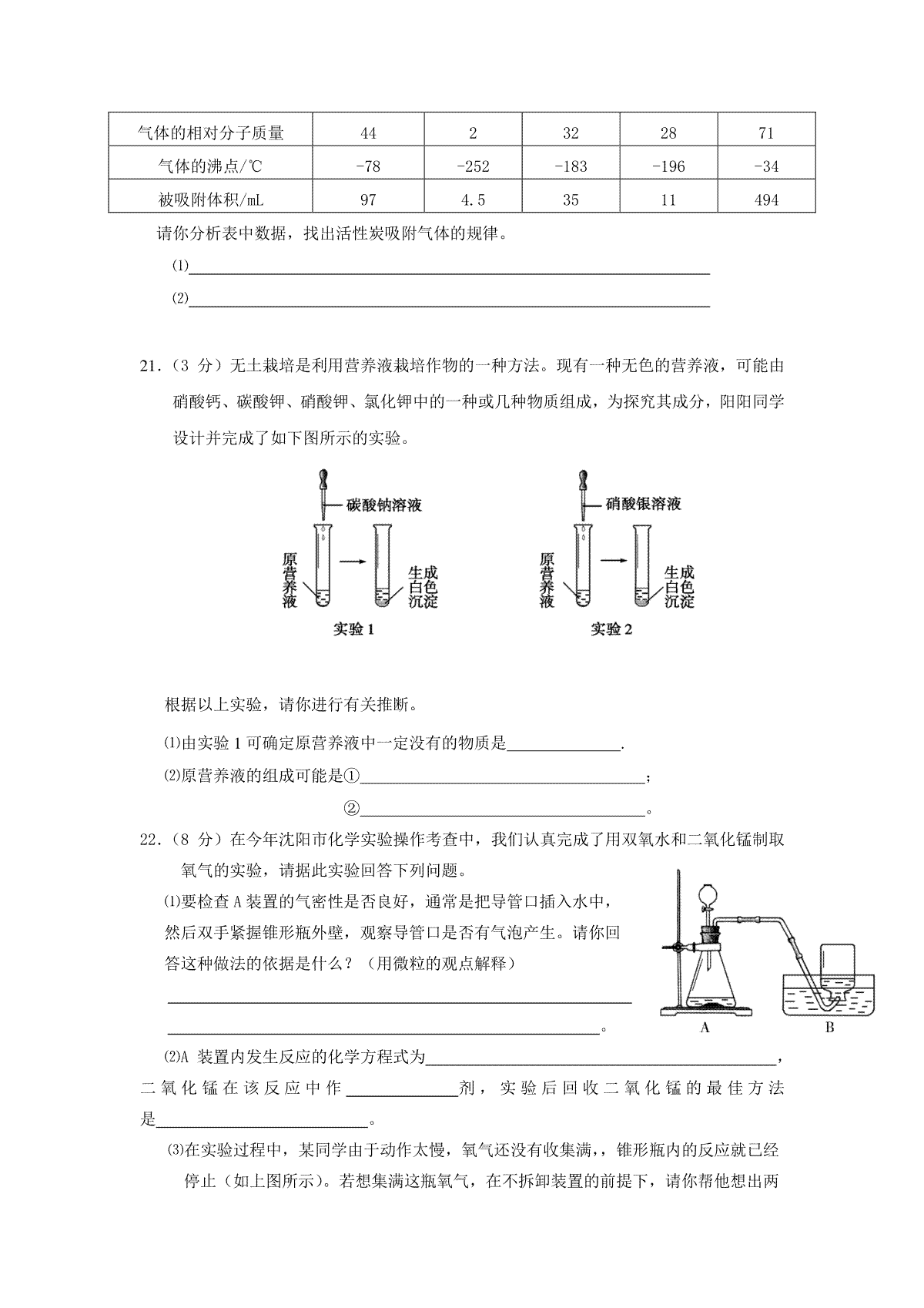 一、2008年辽宁省沈阳市中考化学试题及答案