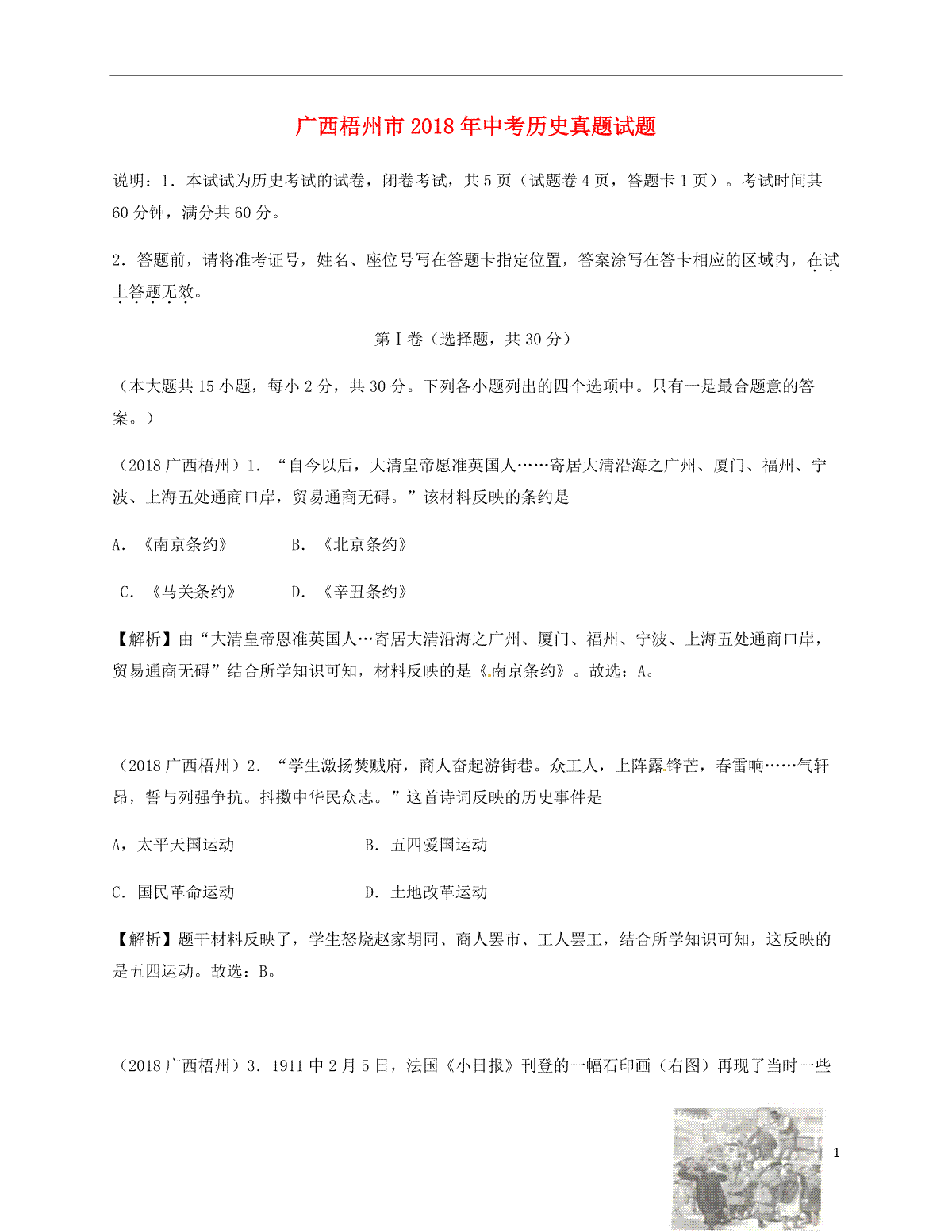 1.广西梧州市2018年中考历史真题试题(含解析)
