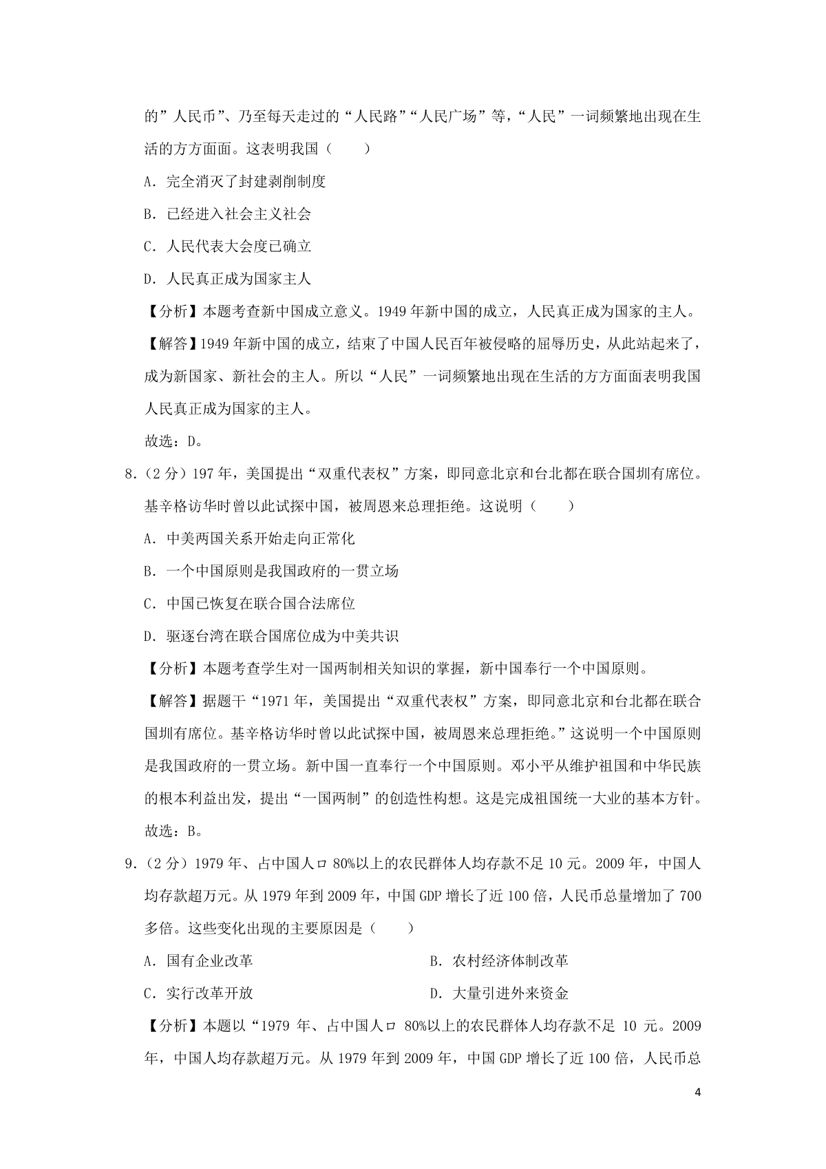4.四川省达州市2019年中考历史真题试题(含解析)