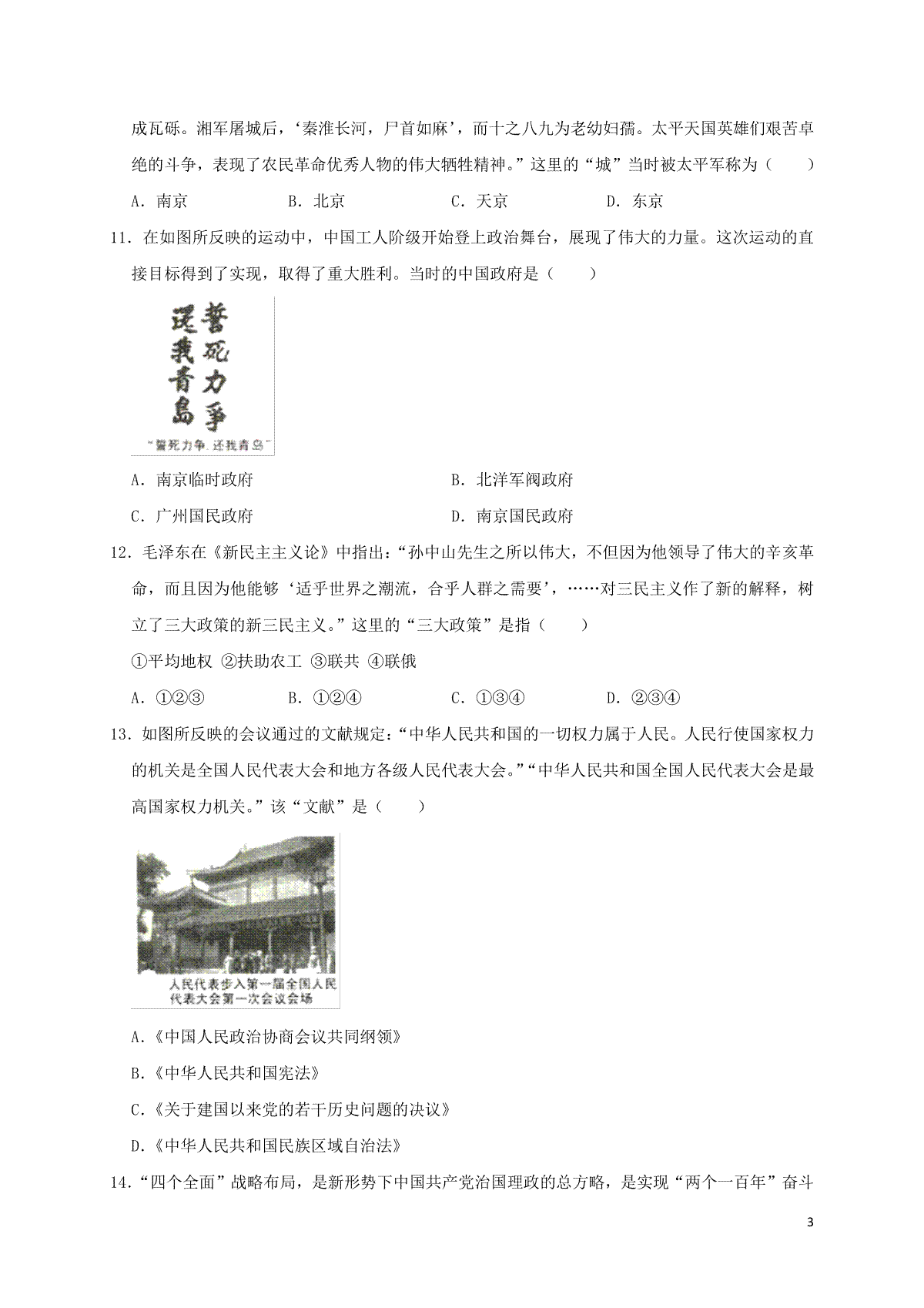 8.四川省自贡市2019年中考历史真题试题(含解析)