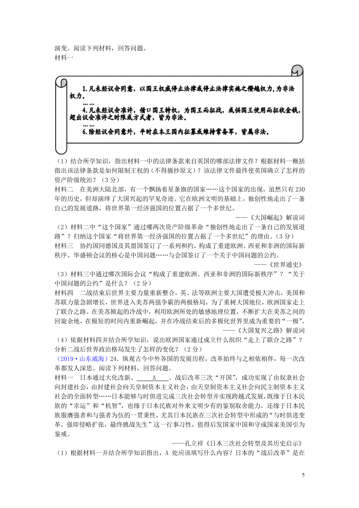1.山东省威海市2019年中考历史真题试题