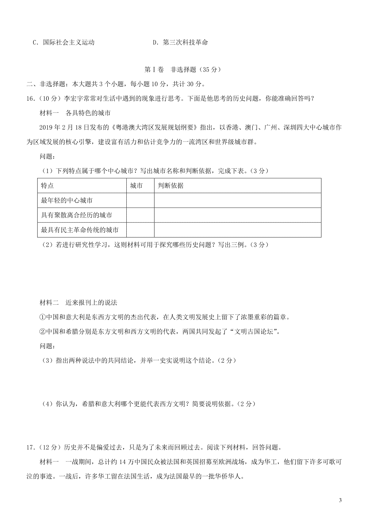 3.山东省济宁市2019年中考历史真题试题