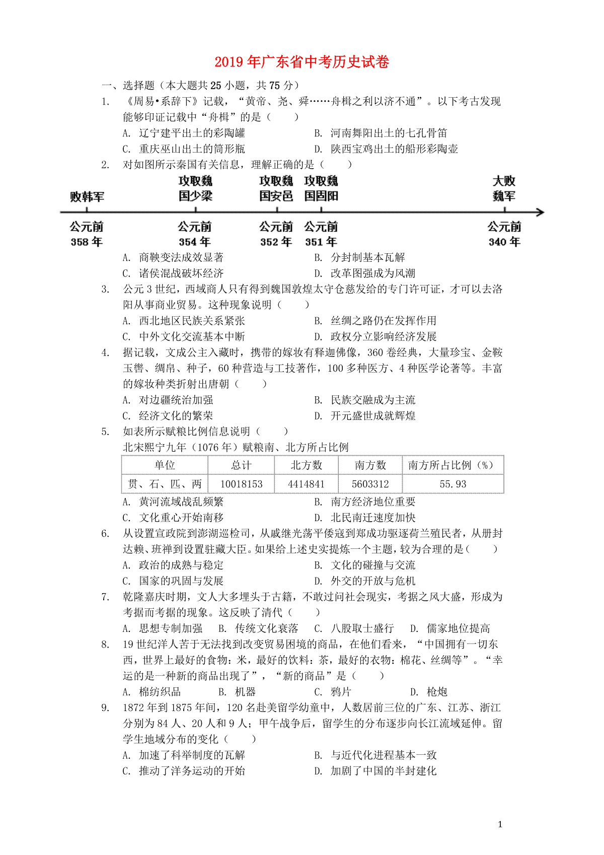 下载广东省2019年中考历史真题试题(含解析)PDF格式或doc