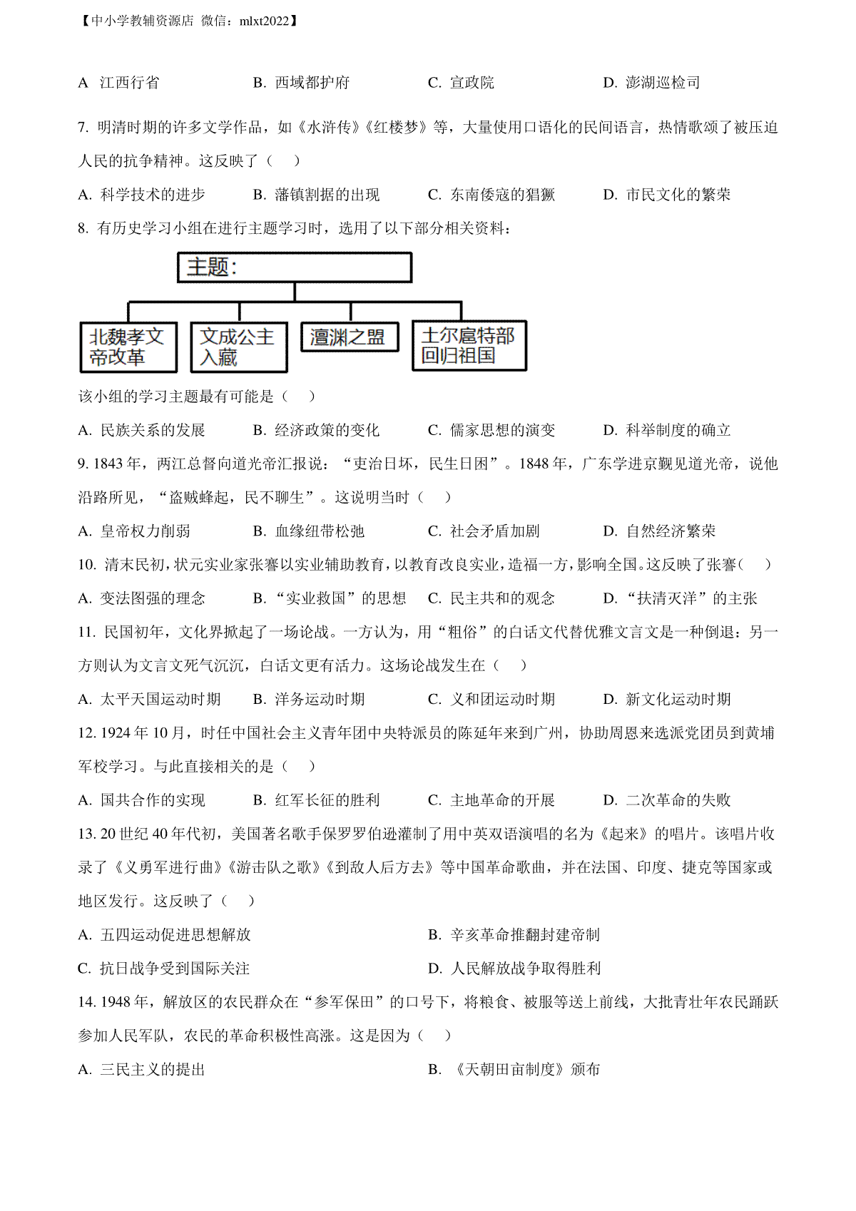 2.精品解析:2022年广东省中考历史真题(解析版)