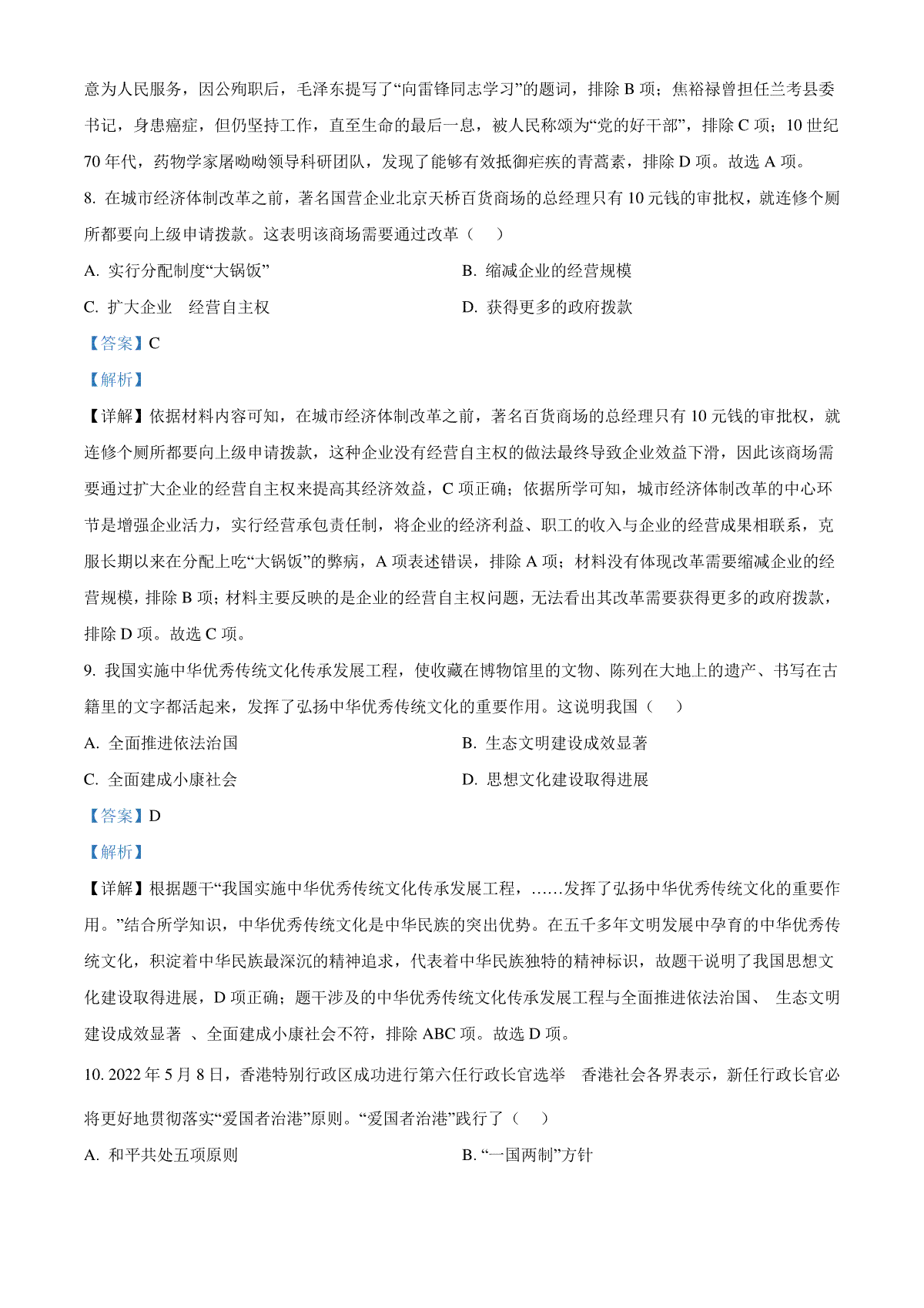 3.精品解析:2022年广西北部湾经济区中考历史试题(解析版)