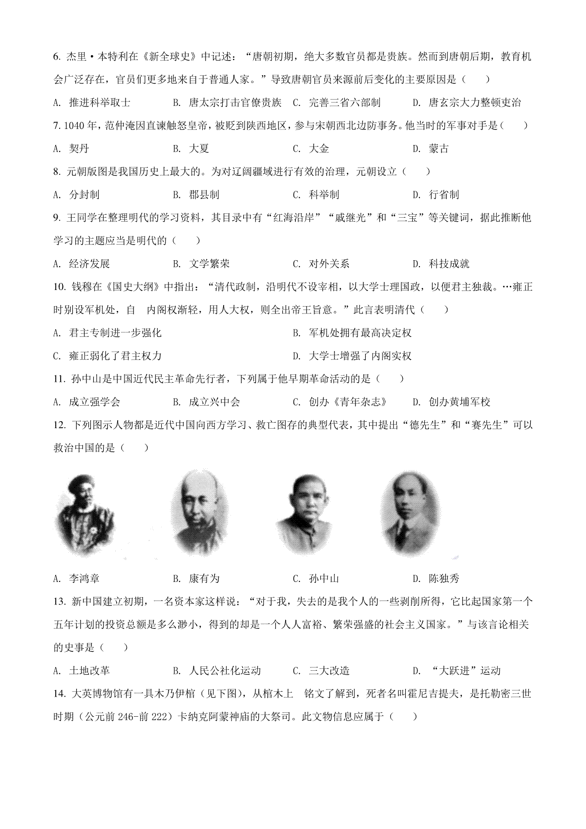 6.精品解析:2022年河南省中考历史真题(解析版)