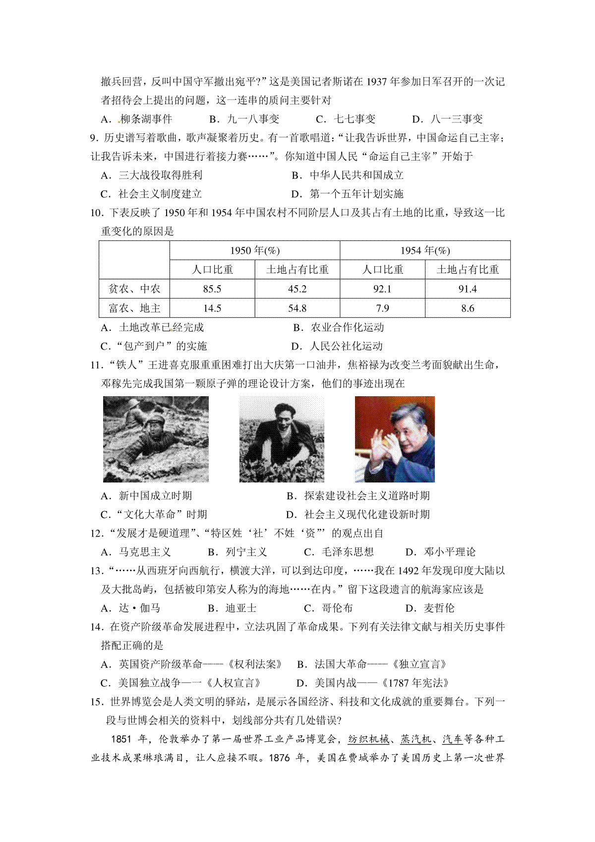 2.2009年江苏省扬州市中考历史试题及答案