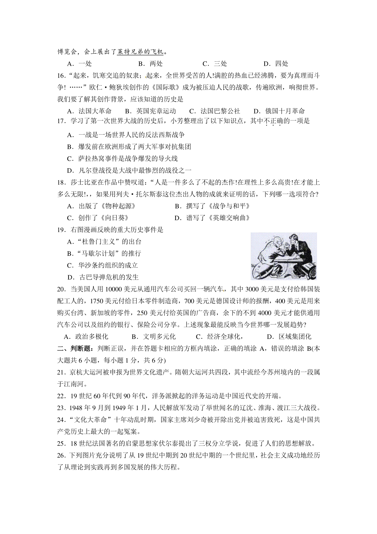 2010年江苏省苏州市中考历史试题及答案