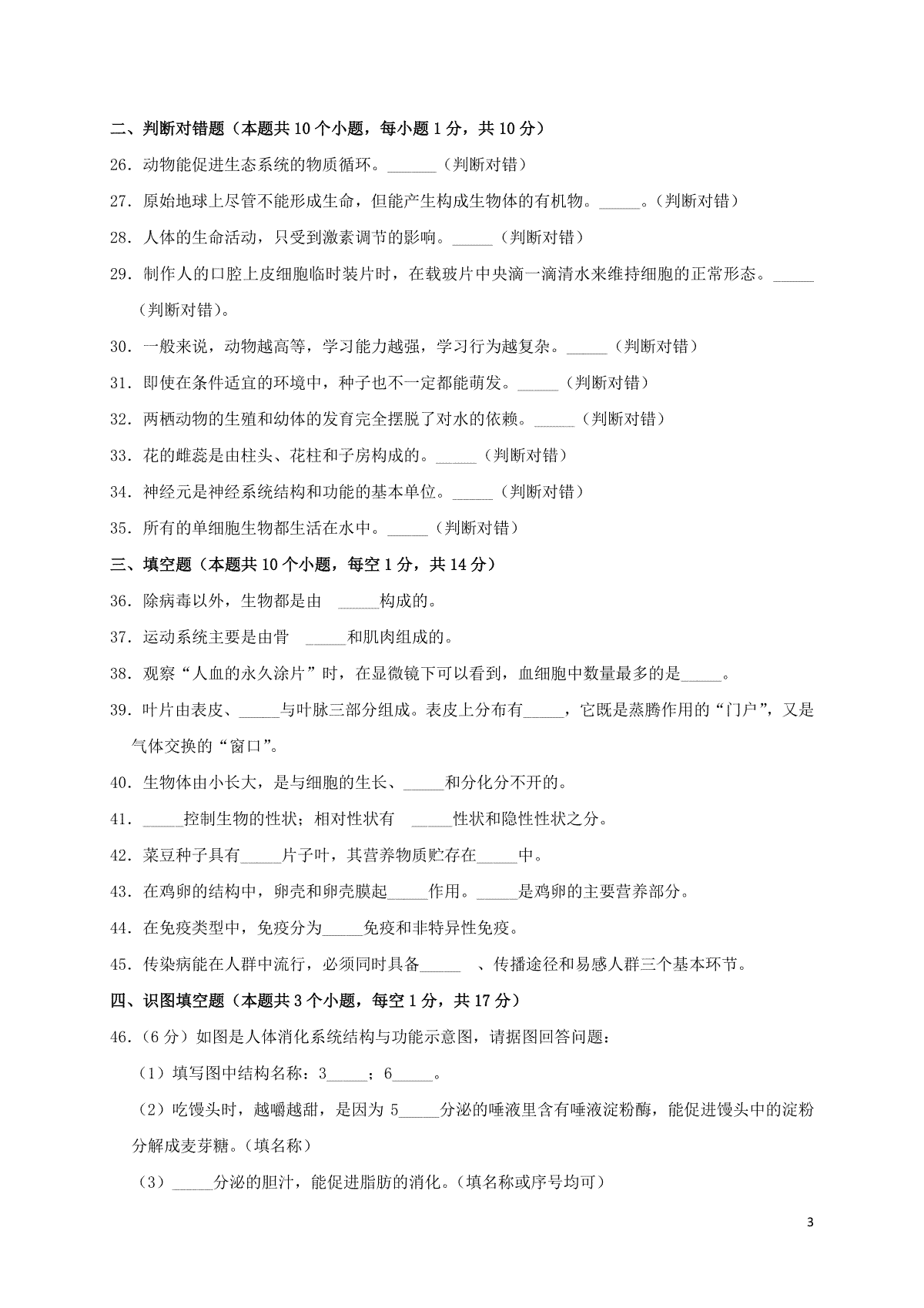 黑龙江省绥化市2019年中考生物真题试题(含解析)