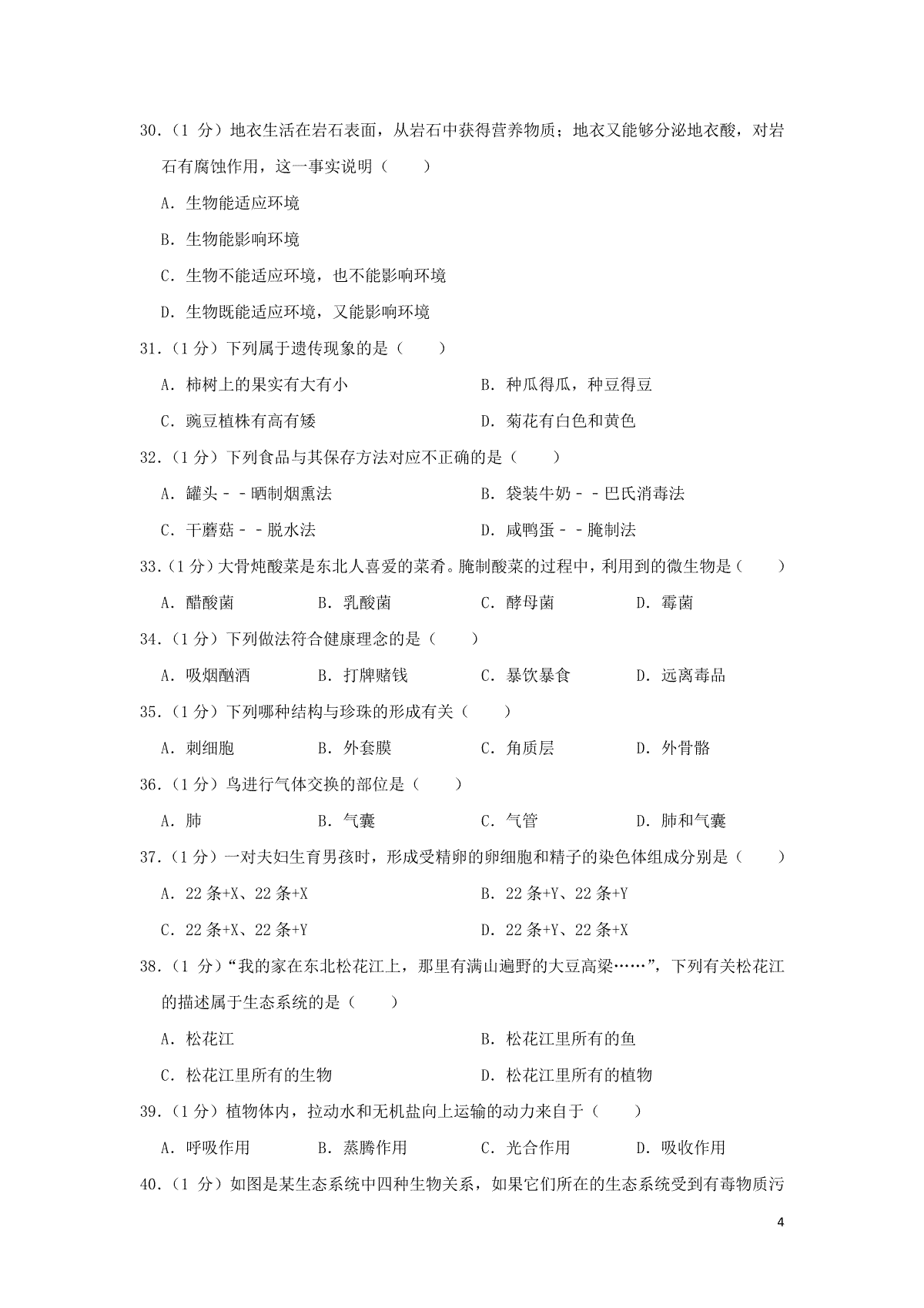 黑龙江省龙东地区2019年中考生物真题试题(含解析)