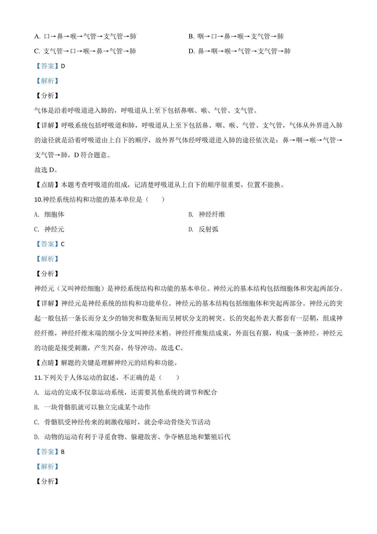 7.精品解析:山西省晋中市2020年中考生物试题(解析版)