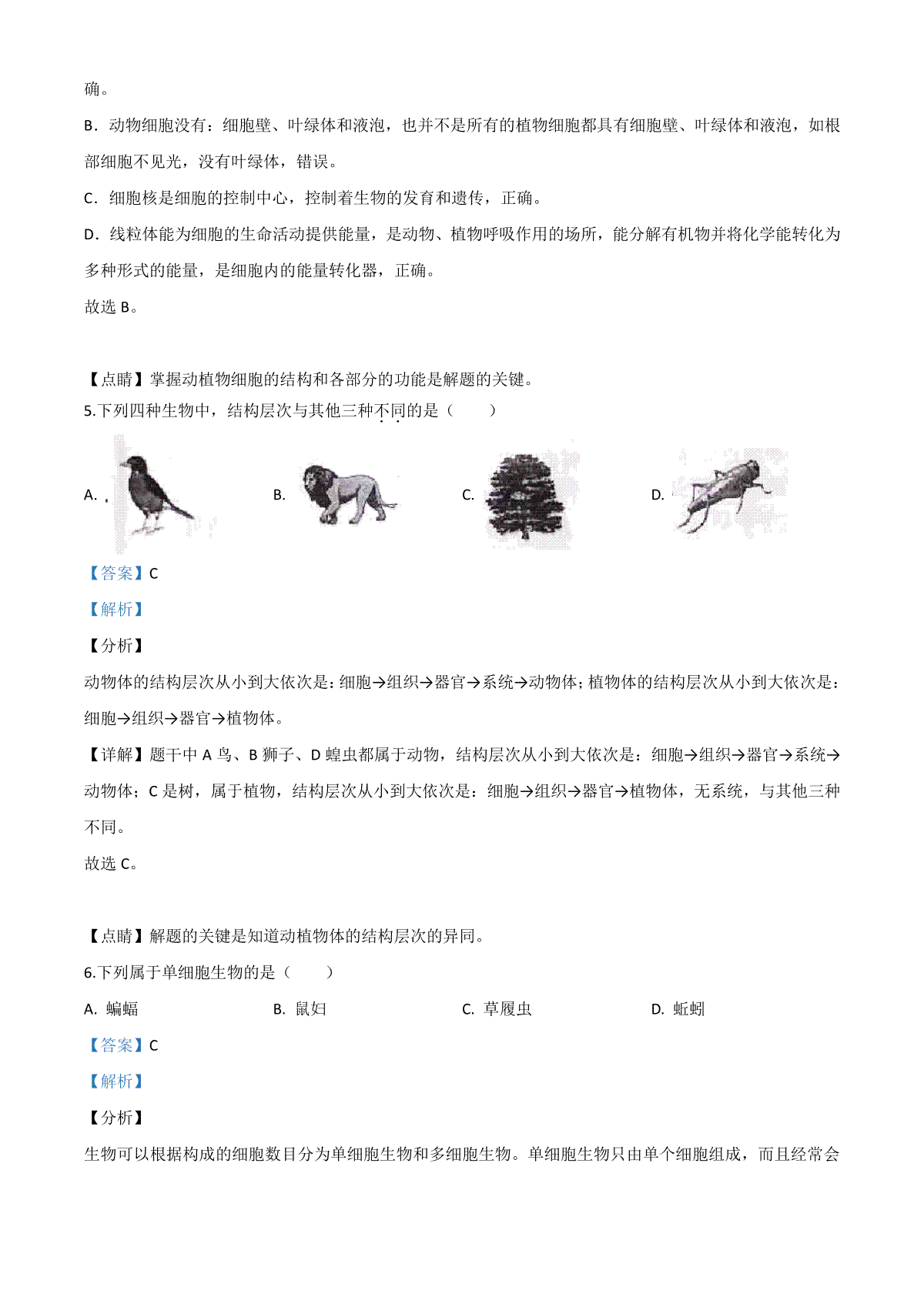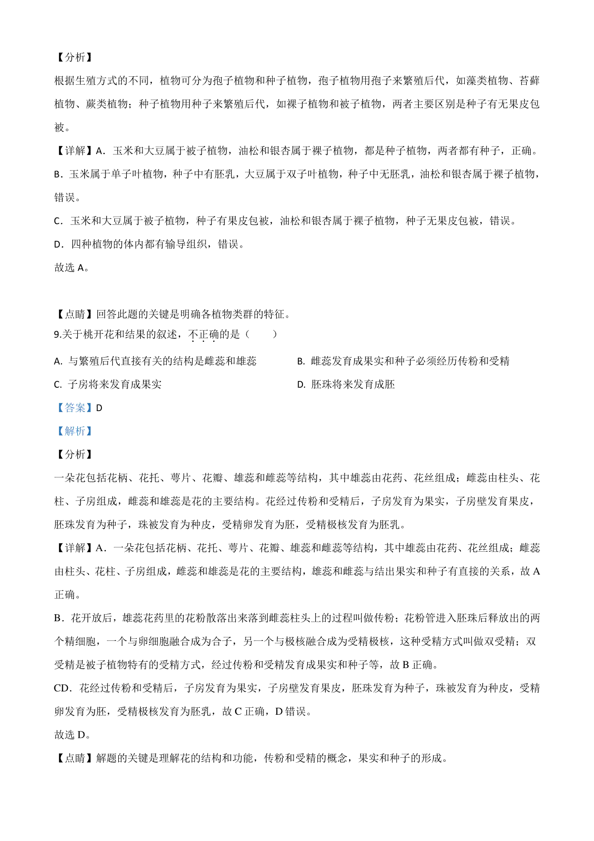 3.精品解析:青海省2020年中考生物试题(解析版)