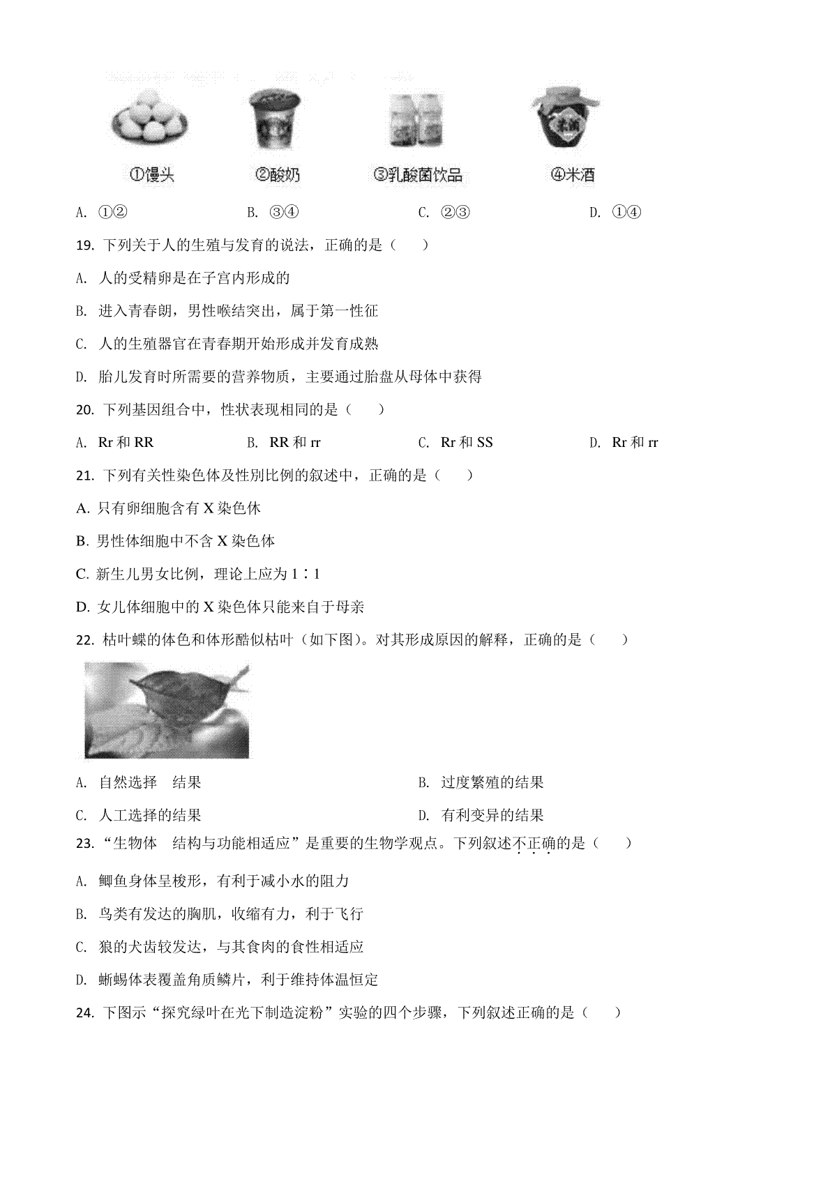 一、精品解析:山东省德州市2020中考生物试题(原卷版)