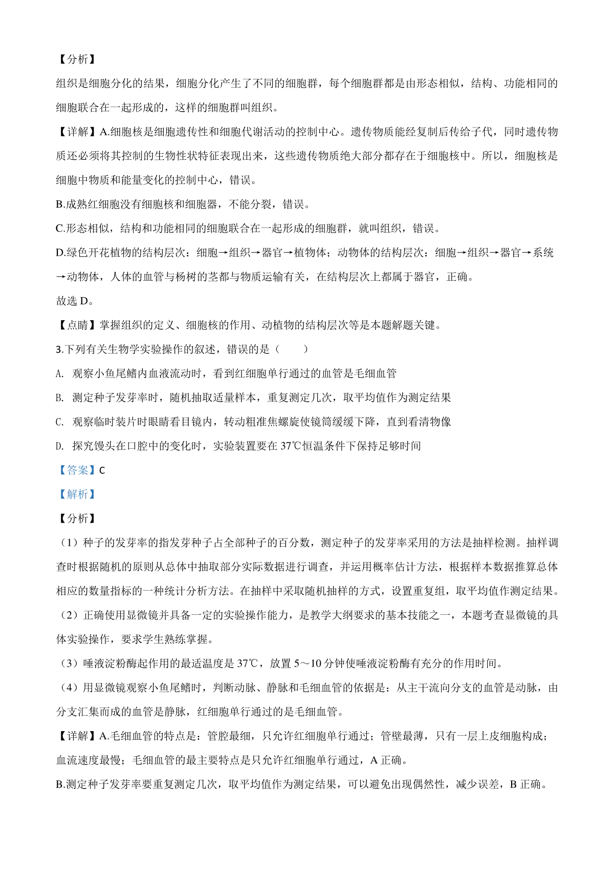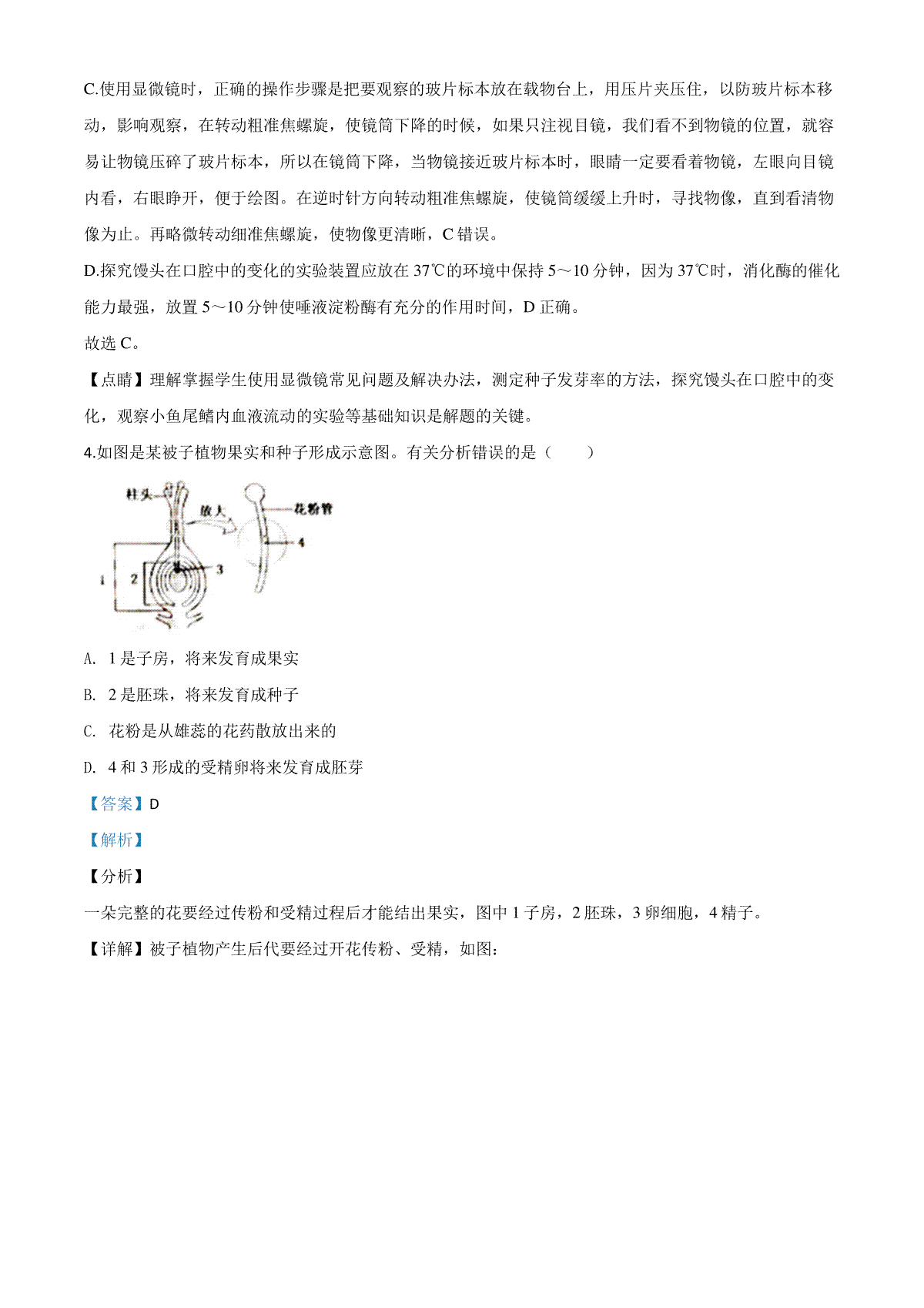 3.精品解析:山东省德州市2020中考生物试题(解析版)