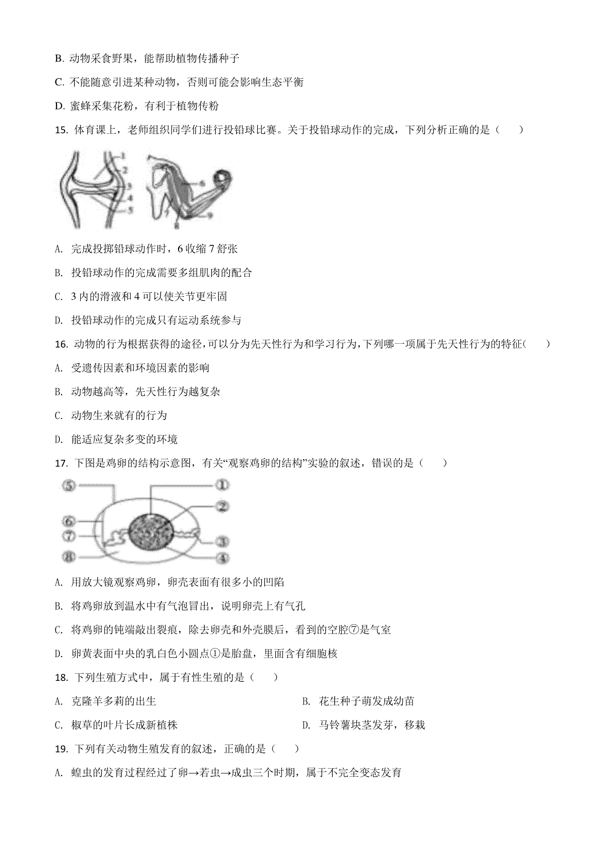 8.精品解析:山东省德州市2020中考生物试题(解析版)
