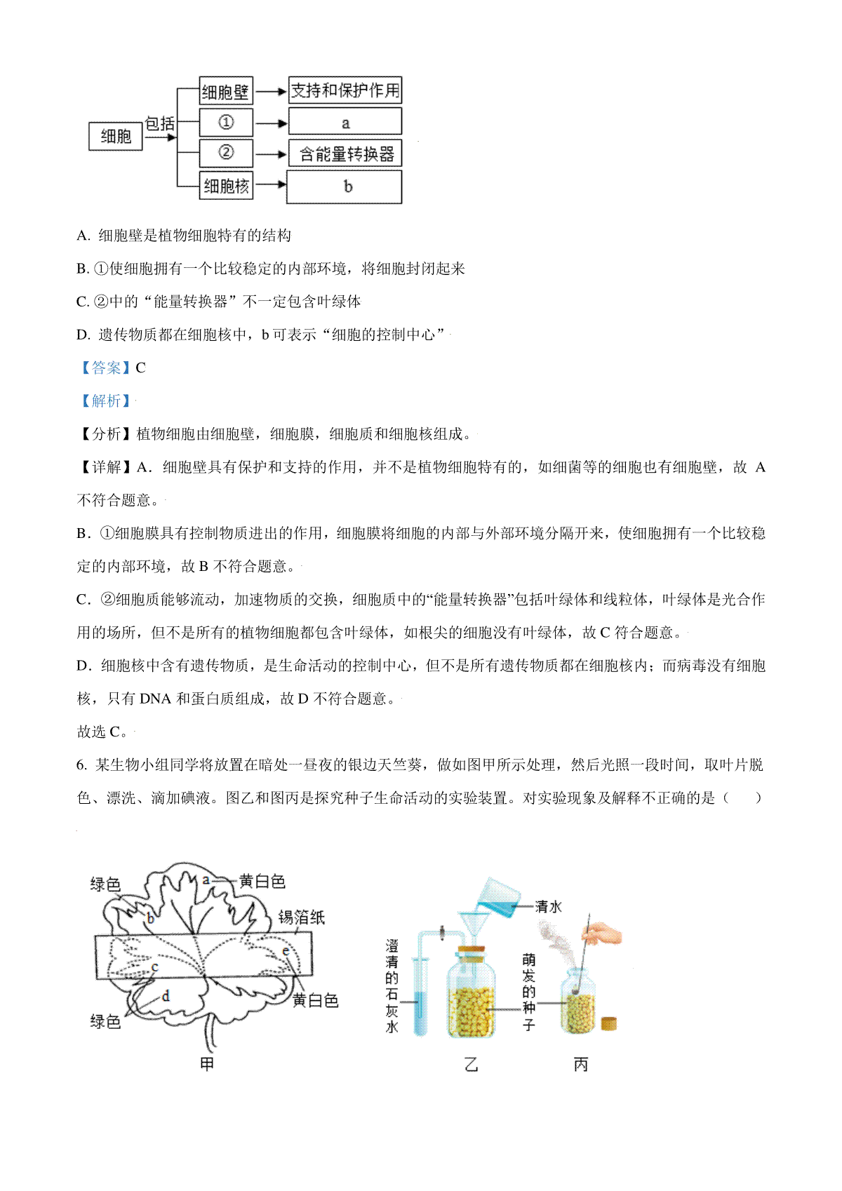 一、精品解析:内蒙古鄂尔多斯市2021年中考生物试题(解析版)