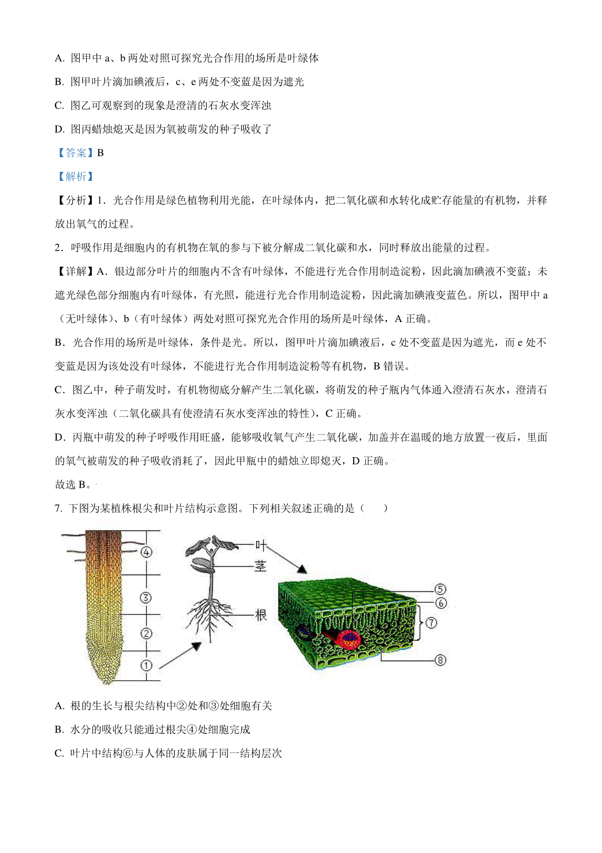 3.精品解析:内蒙古呼和浩特市2021年会考生物试题(解析版)