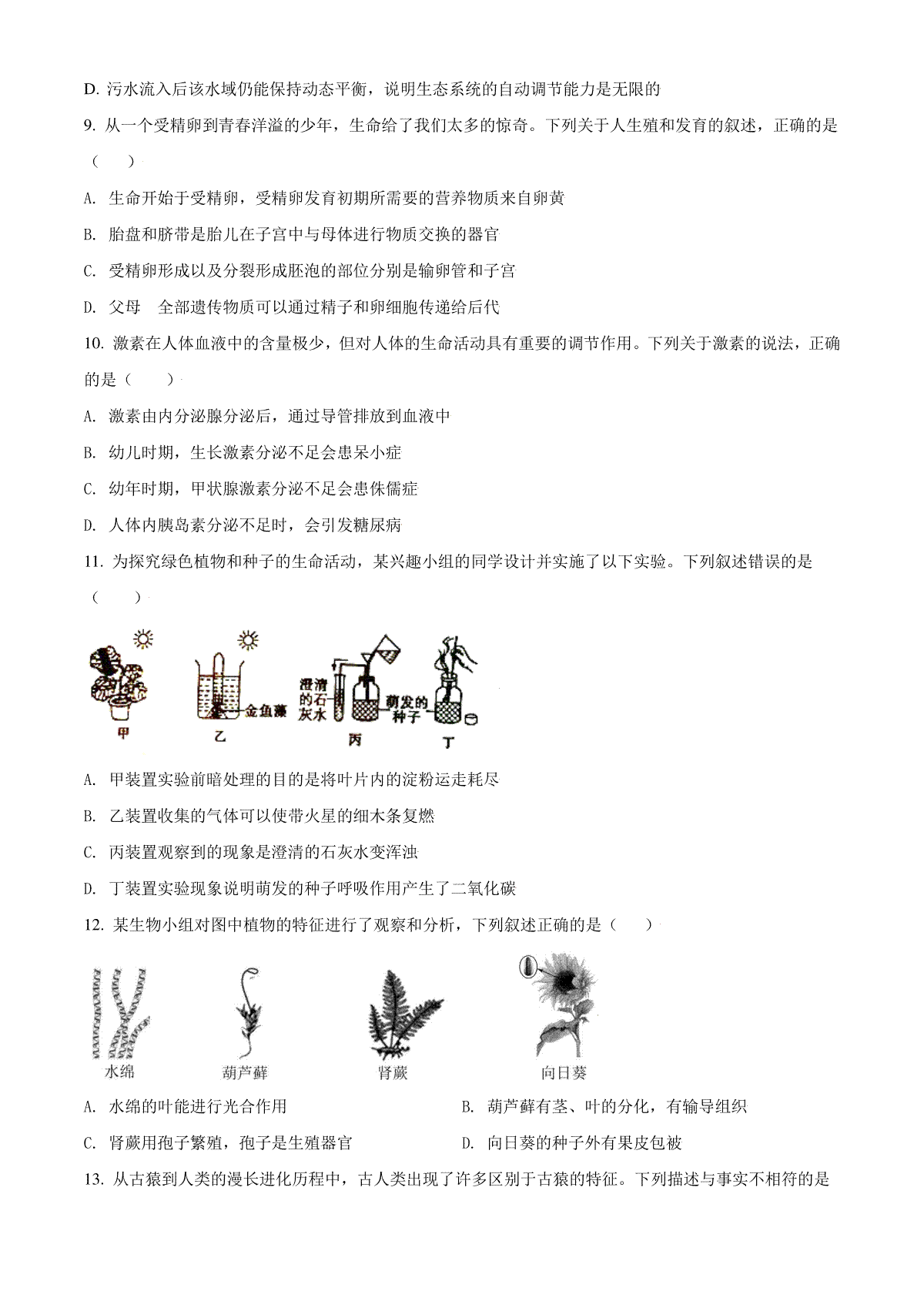 3.精品解析:四川省遂宁市2021年中考生物试题(原卷版)