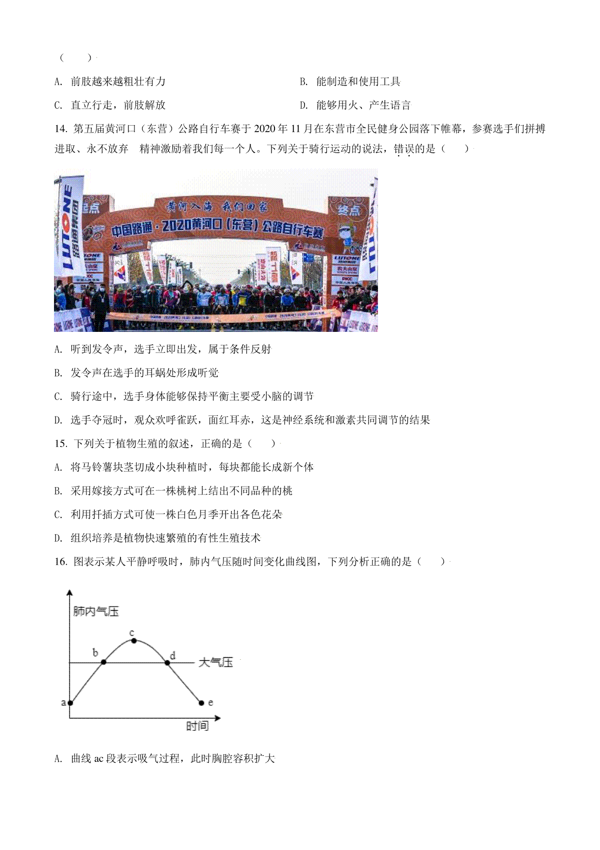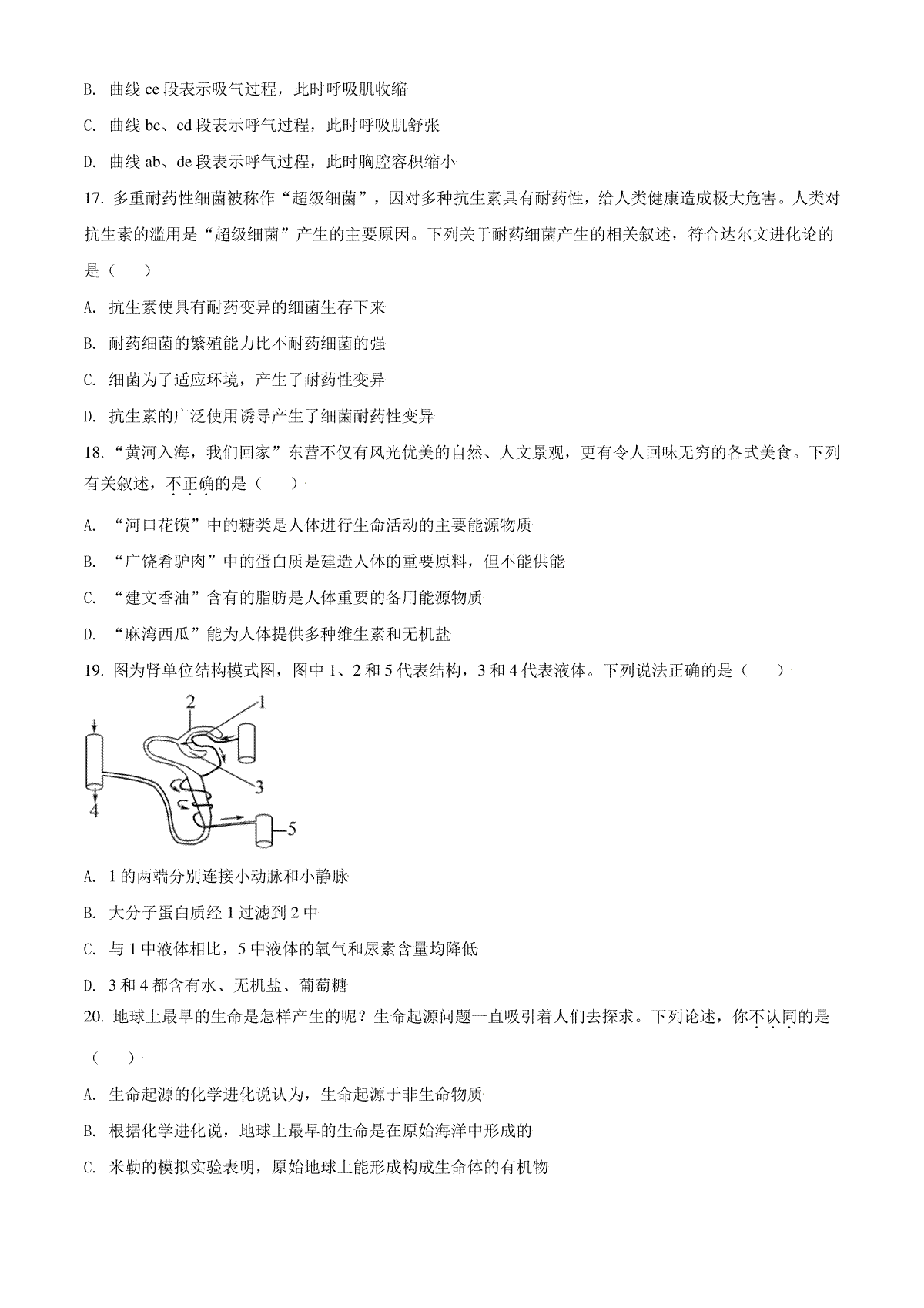 下载精品解析:山东省东营市2021年中考生物试题(原卷版)PDF格式或doc
