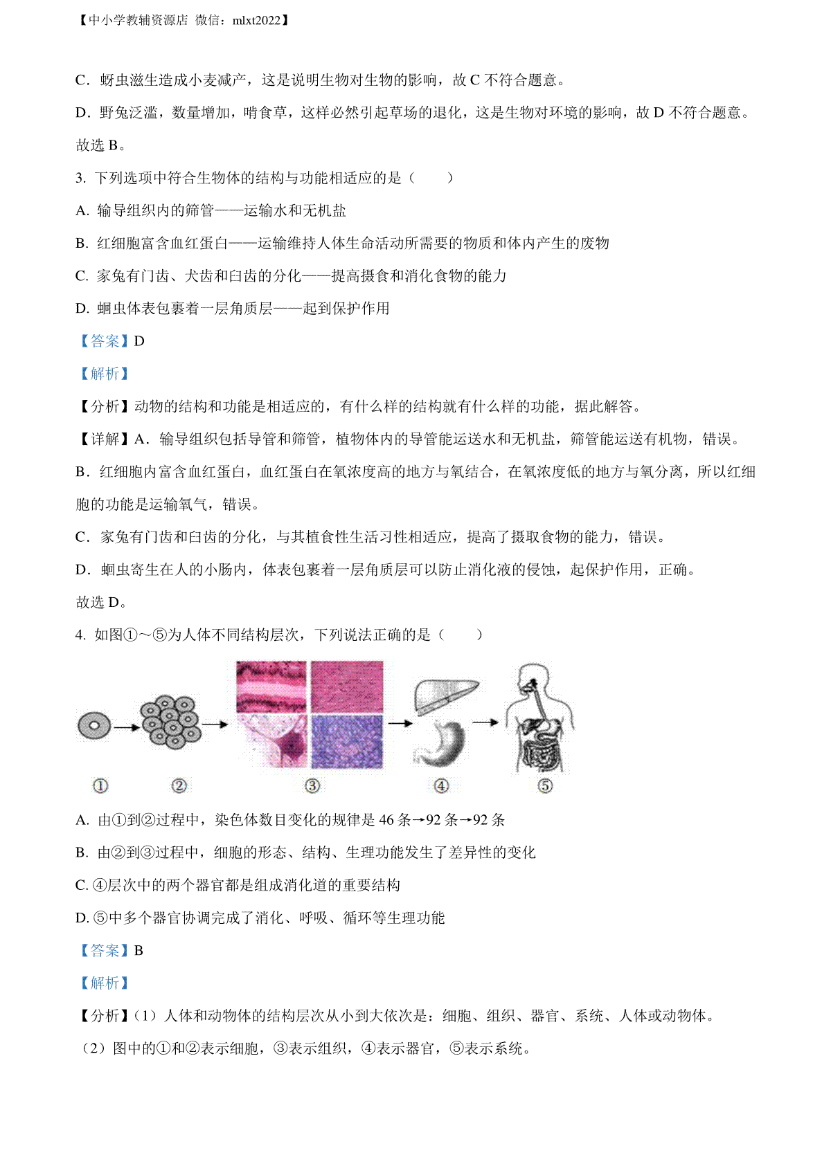 一、精品解析:2022年内蒙古通辽市中考生物真题(解析版)