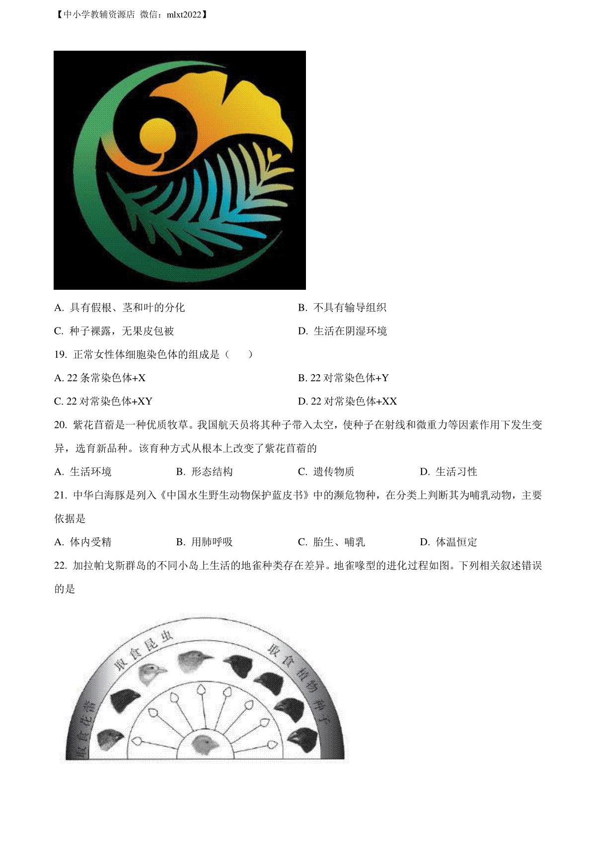 如果你想下载精品解析:2022年北京市中考生物真题(原卷版)DOC或PDF版,请点击本文末链接!