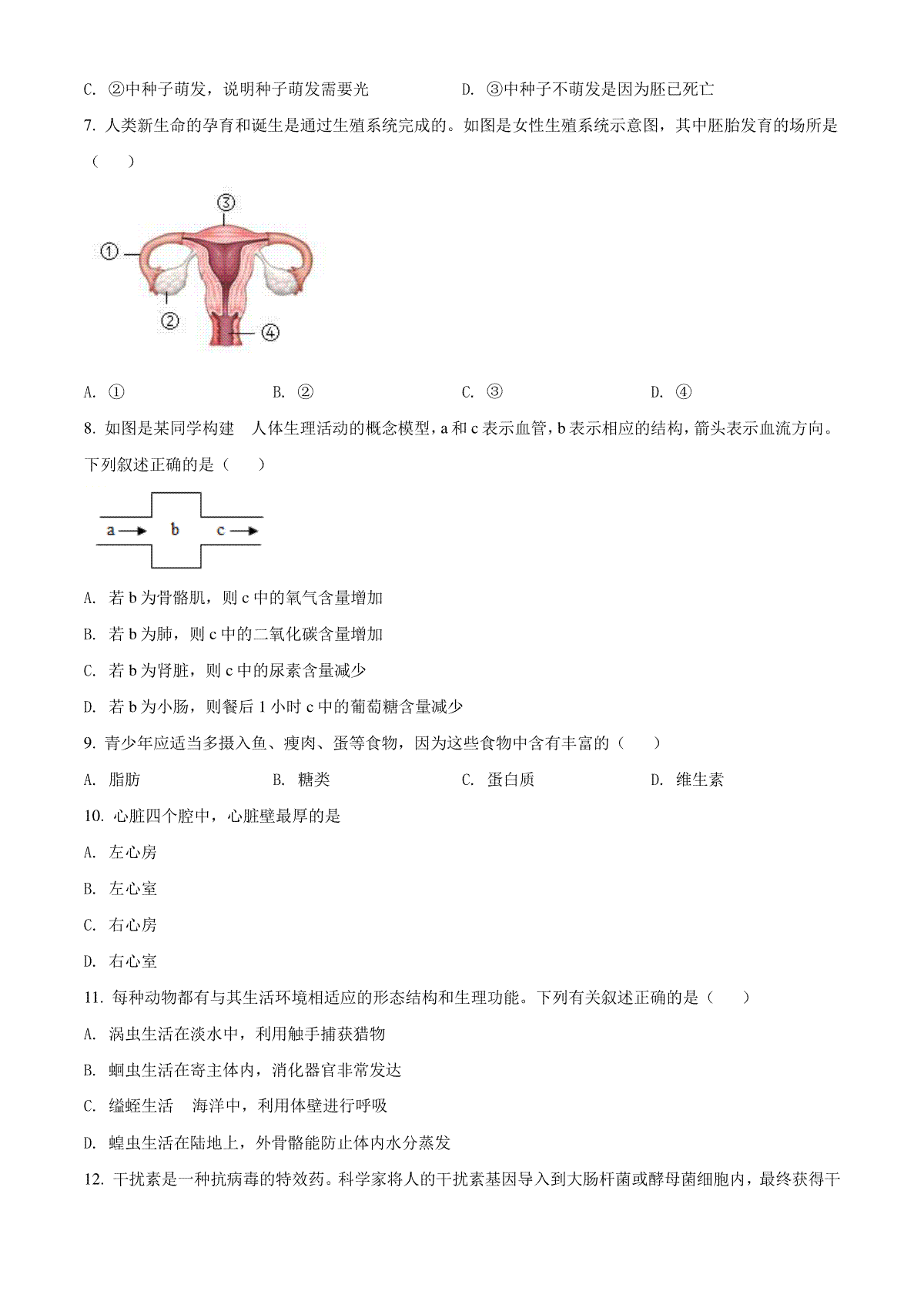 3.精品解析:2022年吉林省大安市中考生物真题(解析版)(1)