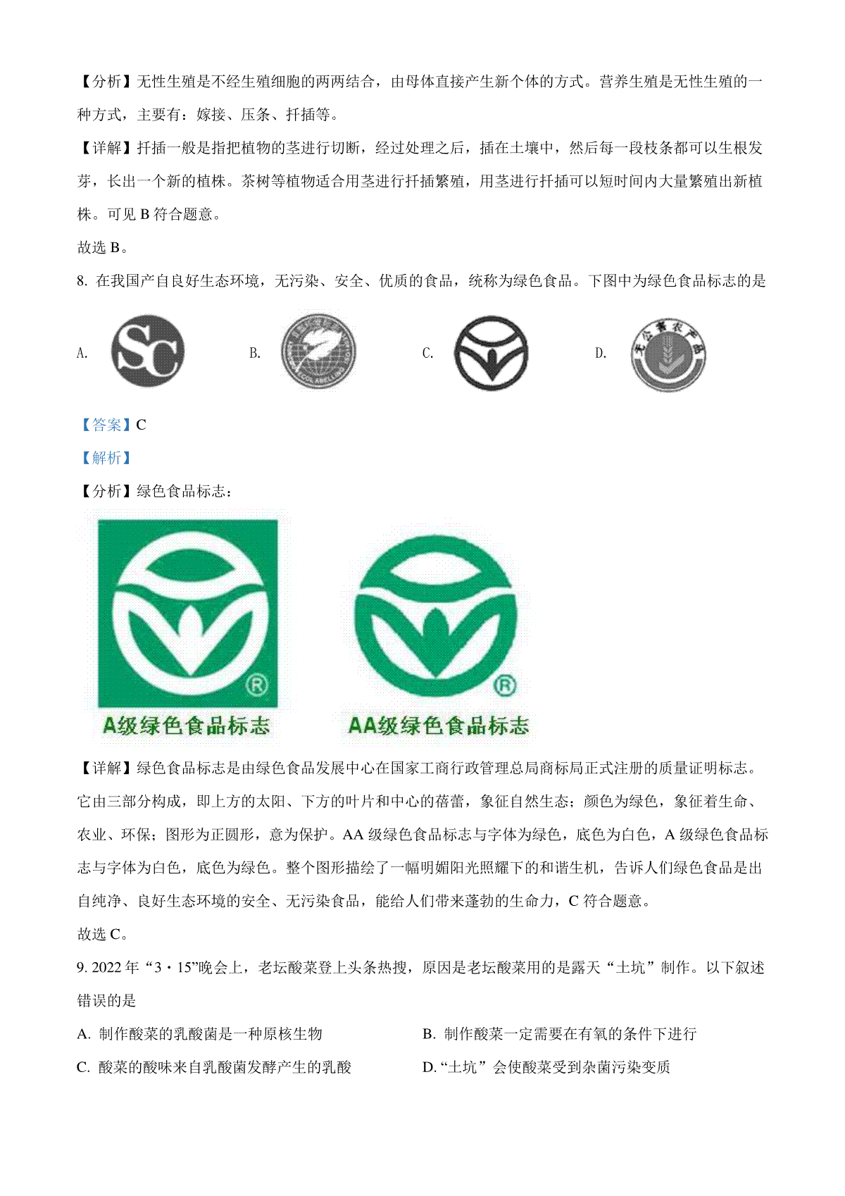 8.精品解析:2022年吉林省大安市中考生物真题(解析版)(1)