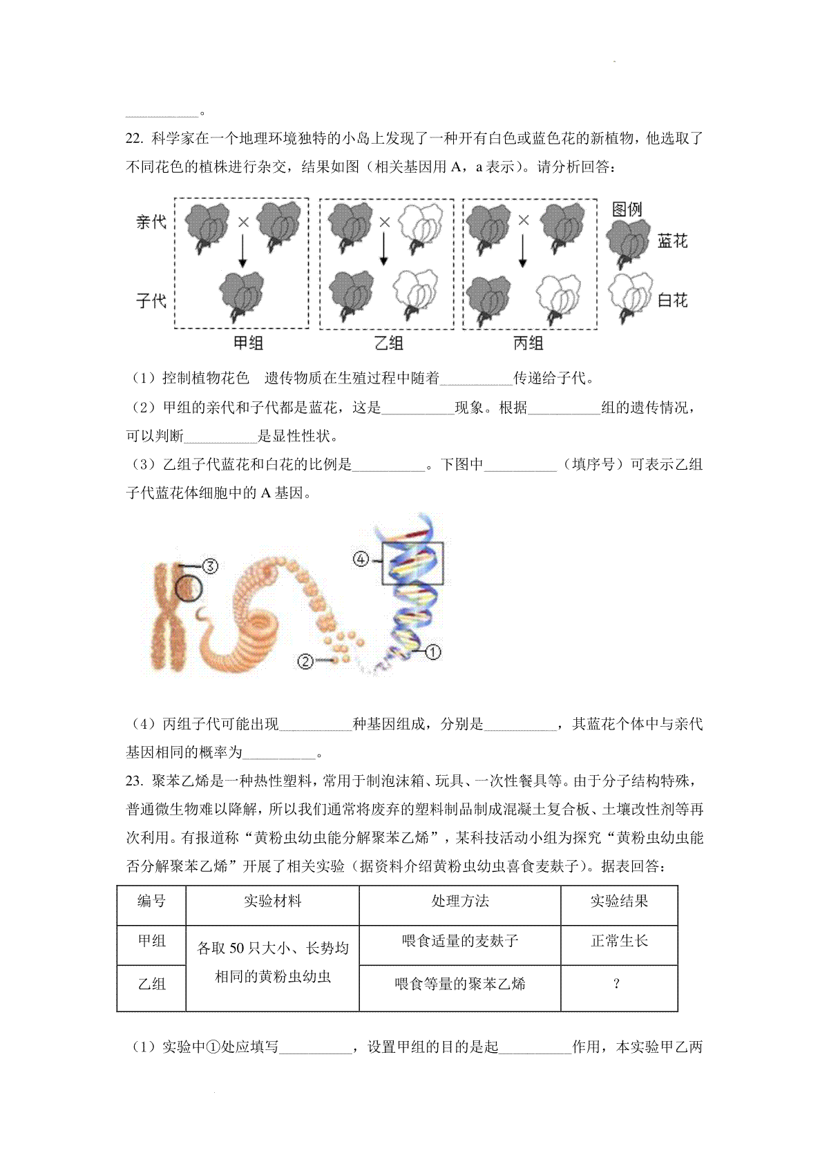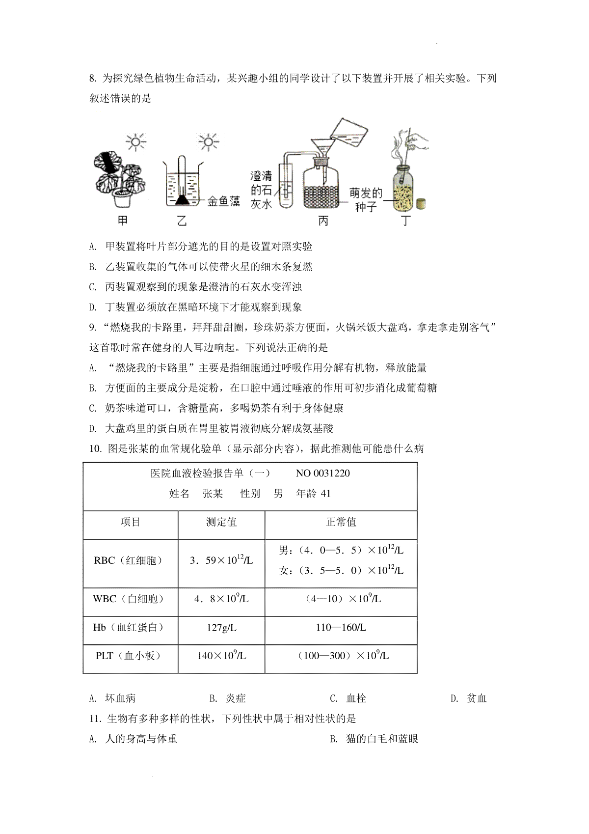 3.精品解析:2022年四川省广安市中考生物真题(原卷版)