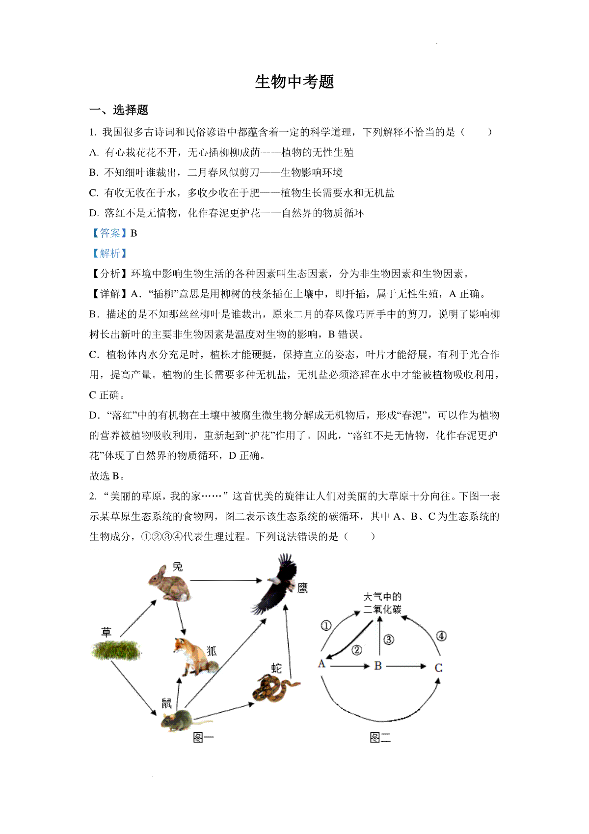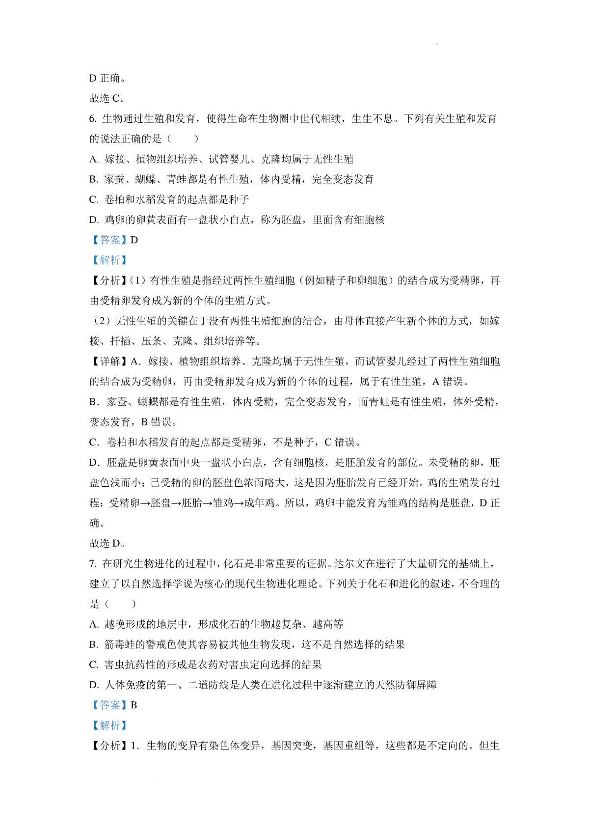 3.精品解析:2022年四川省资阳市中考生物真题(解析版)