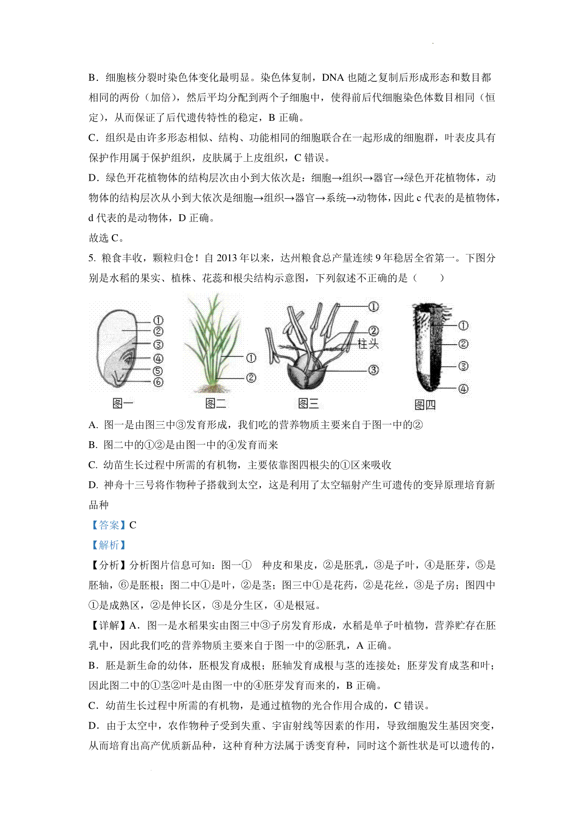 一、精品解析:2022年四川省达州市中考生物真题(解析版)