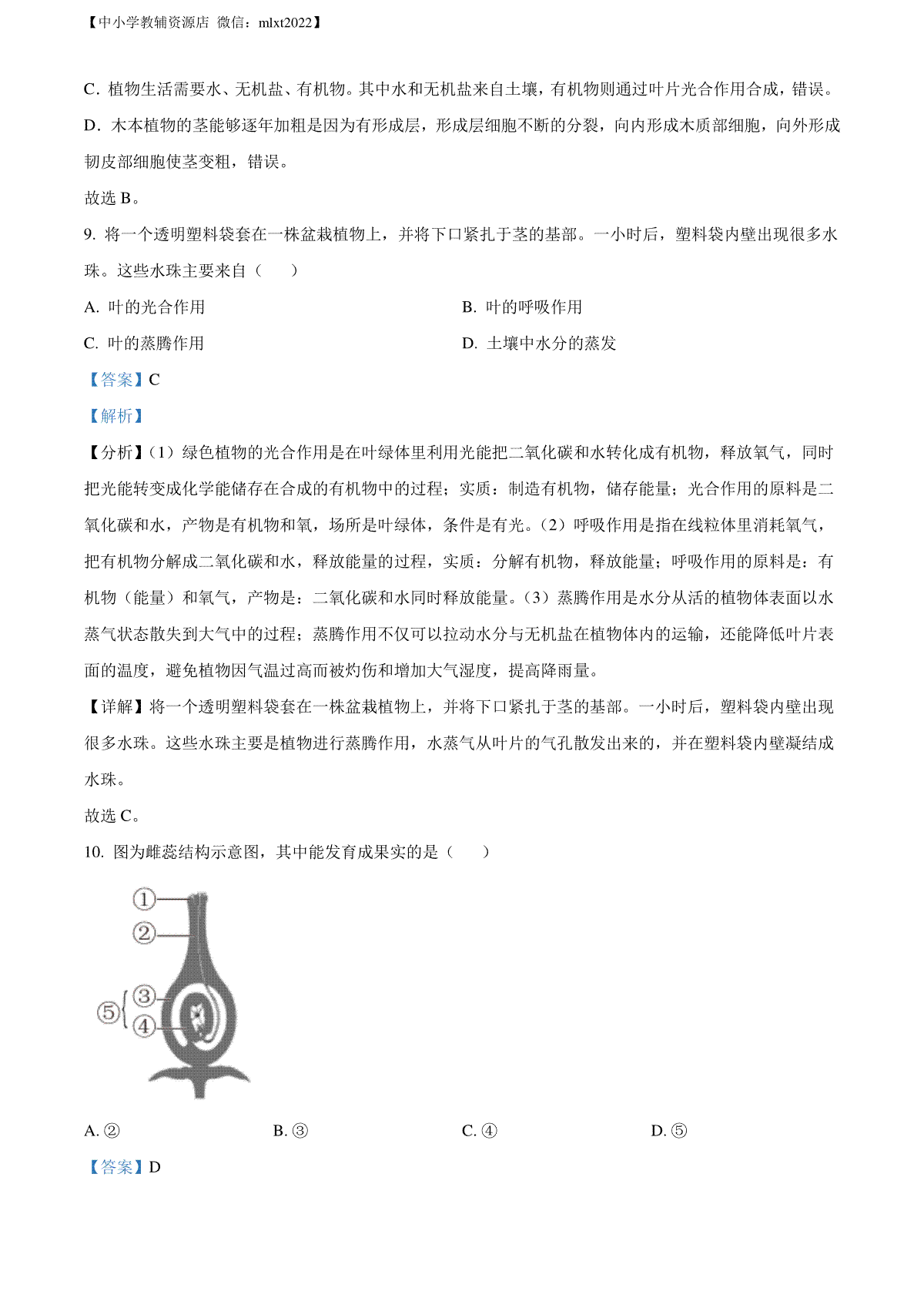 3.精品解析:2022年山东省临沂市中考生物真题(解析版)