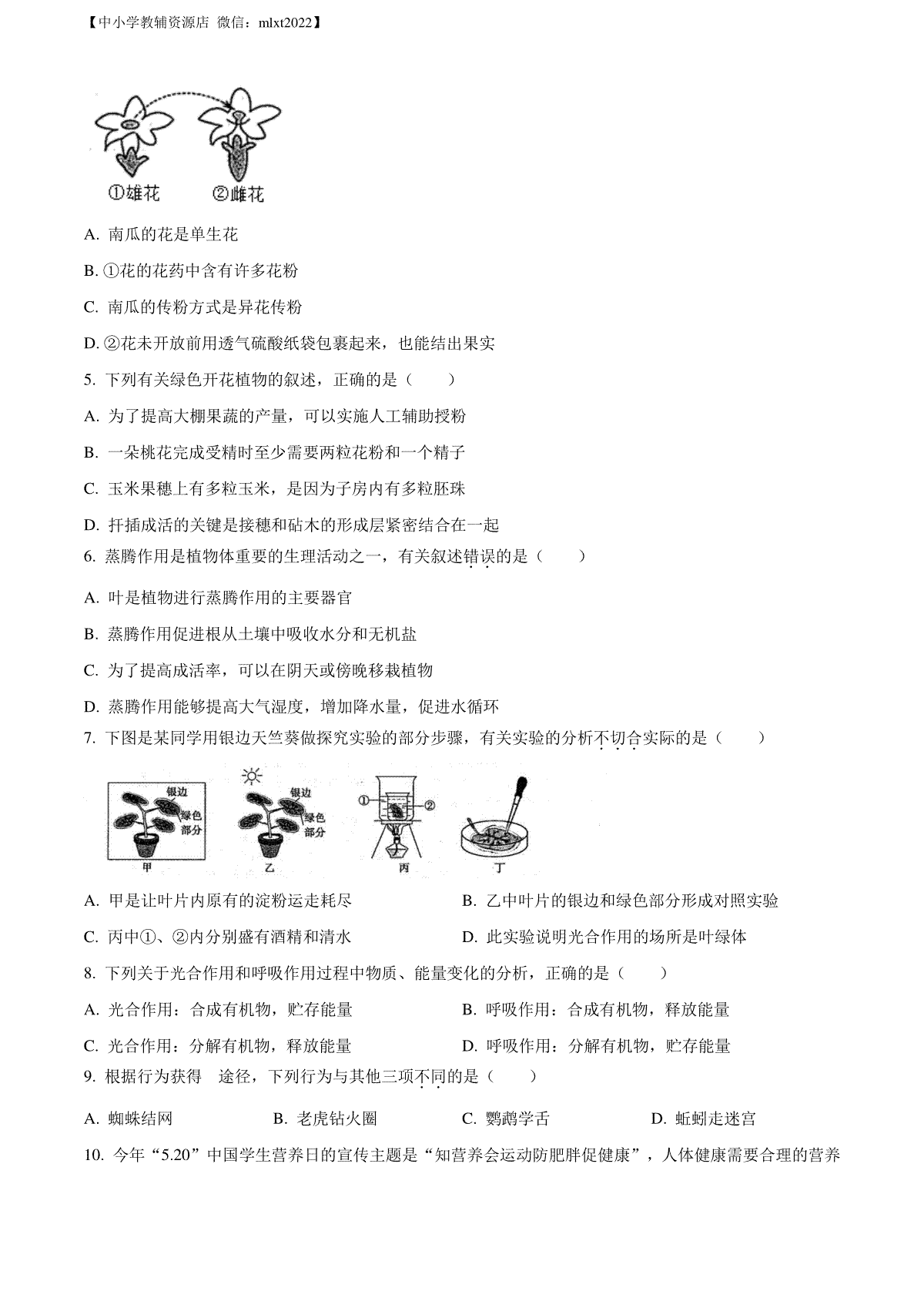 如果你想下载精品解析:2022年山东省滨州市中考生物真题(原卷版)DOC或PDF版,请点击本文末链接!