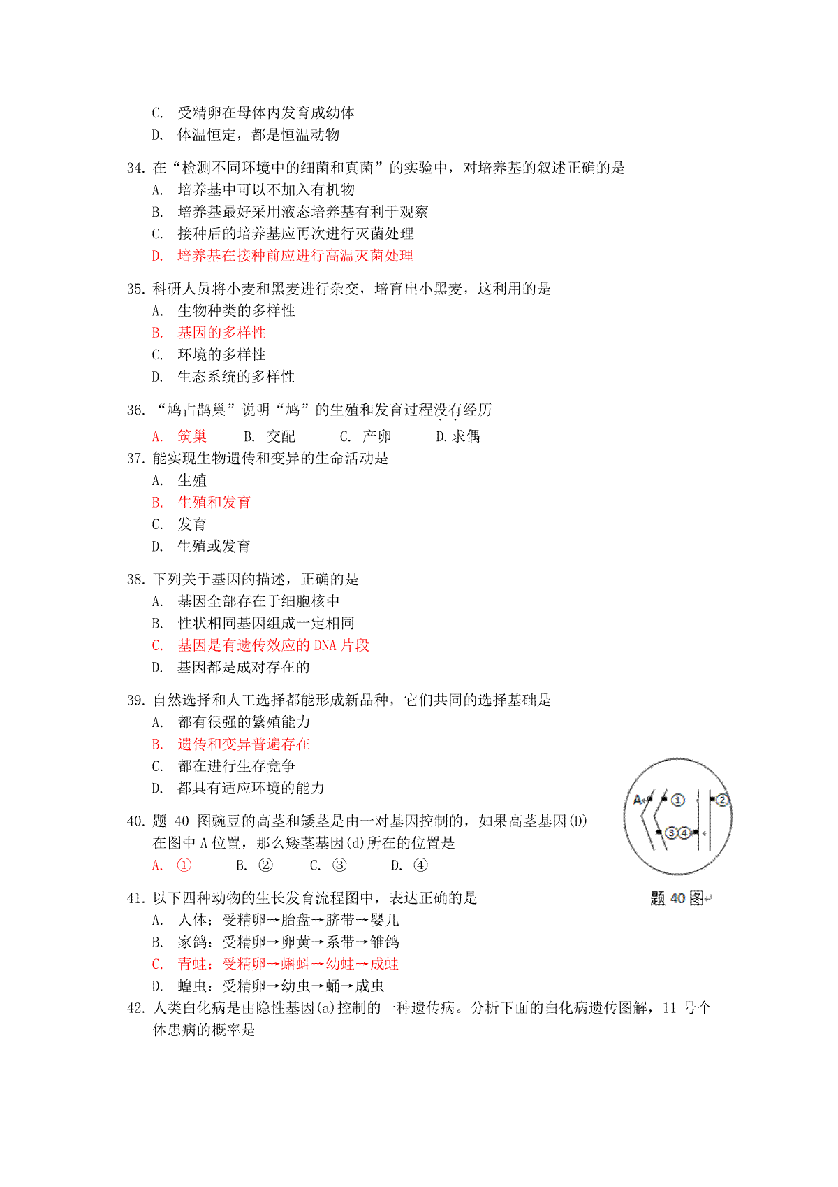 下载2016广东省中考生物真题及答案PDF格式或doc