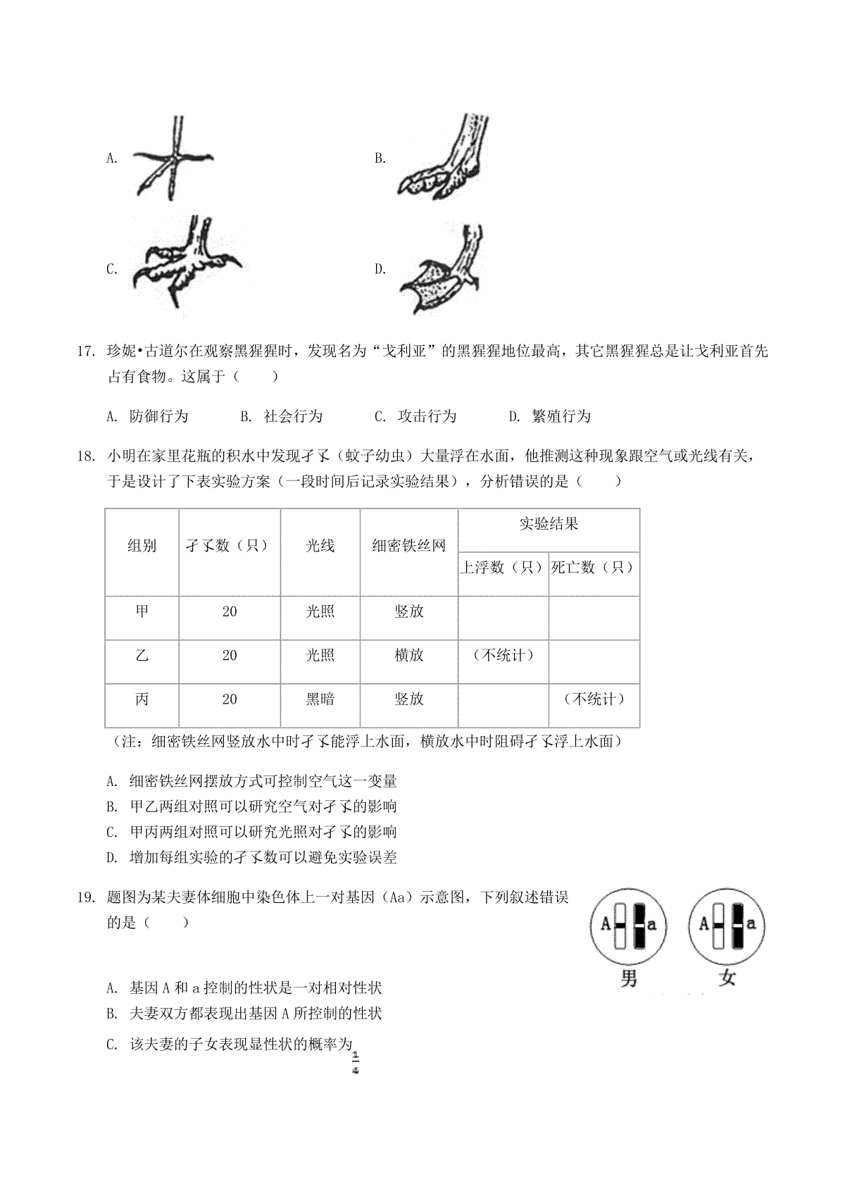 下载2019年广东省中考生物真题及答案PDF格式或doc