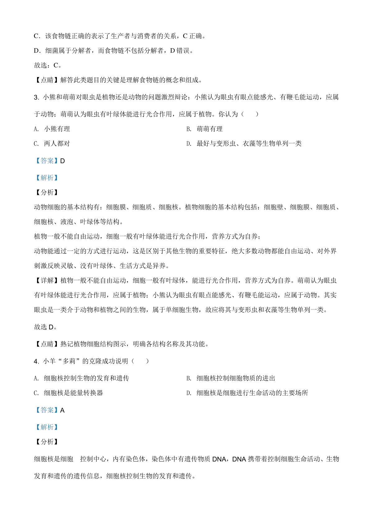 8.精品解析:海南省2021年中考生物试题(解析版)