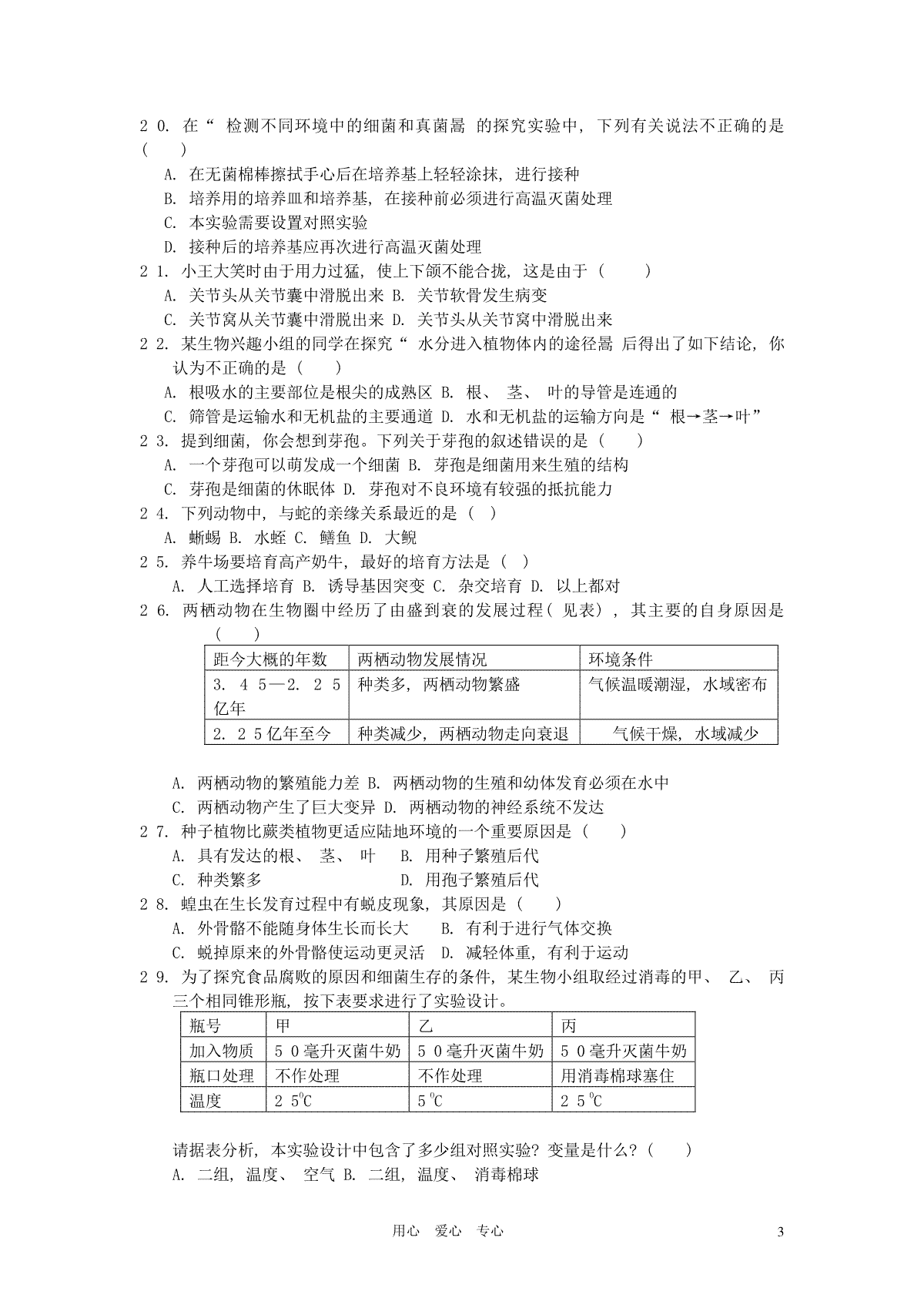 一、2012年山东青岛初中生物学业考试题及答案