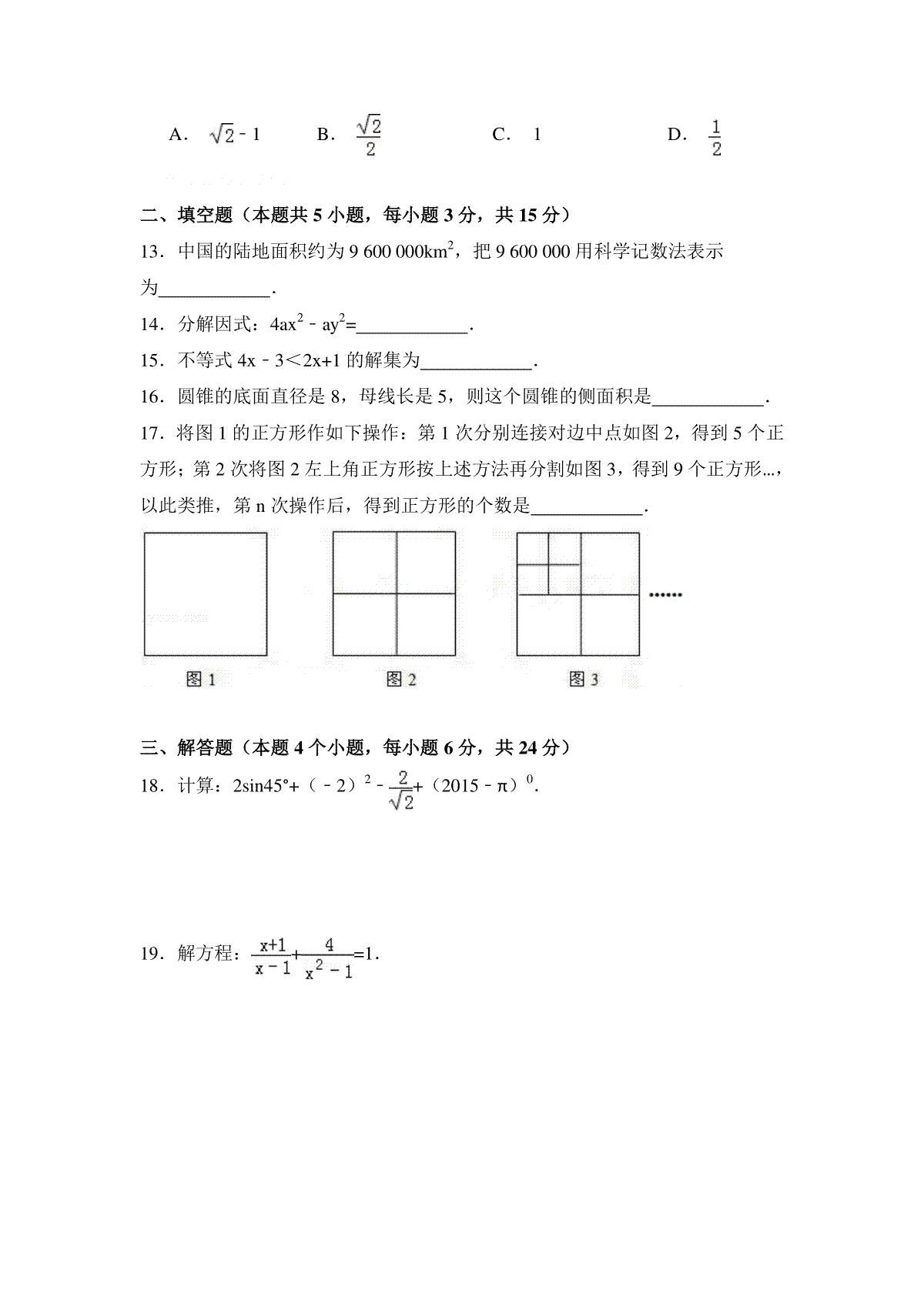 2.2015年内蒙古包头市、乌兰察布市中考数学试卷(含解析版)